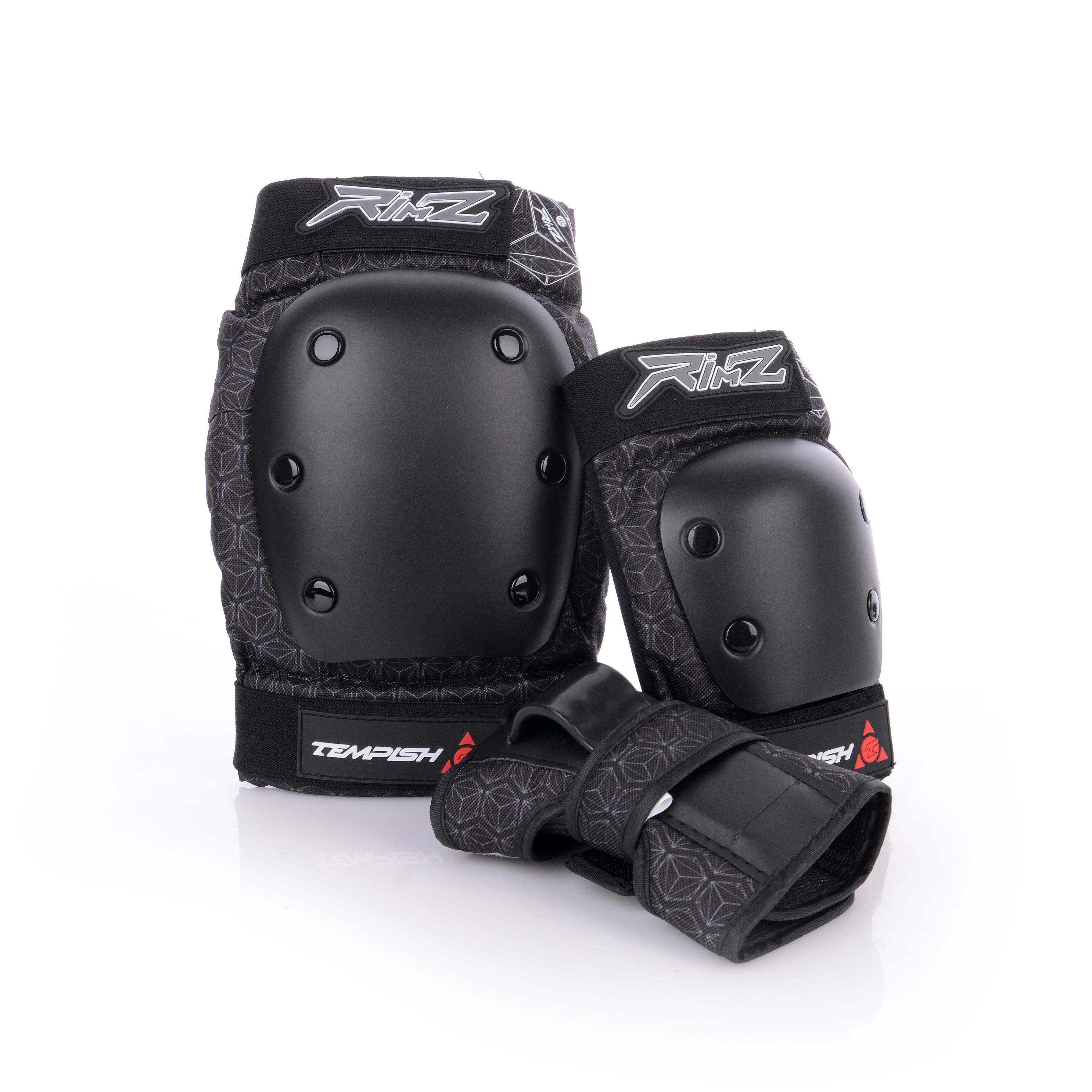 Tempish Rimz - классический набор из трех протекторов (колени, локти, запястья) для агрессивного катания на скейтбордах, лонгбордах и самокатах.