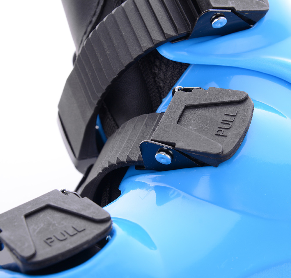 Стелька, установленная внутрь, обеспечивает повышенный комфорт благодаря хорошей фиксации стопы. Полное удержание ноги в обуви гарантируют три металлических застежки-трещотки. Также в случае повреждения застежки можно заменить на новые.
