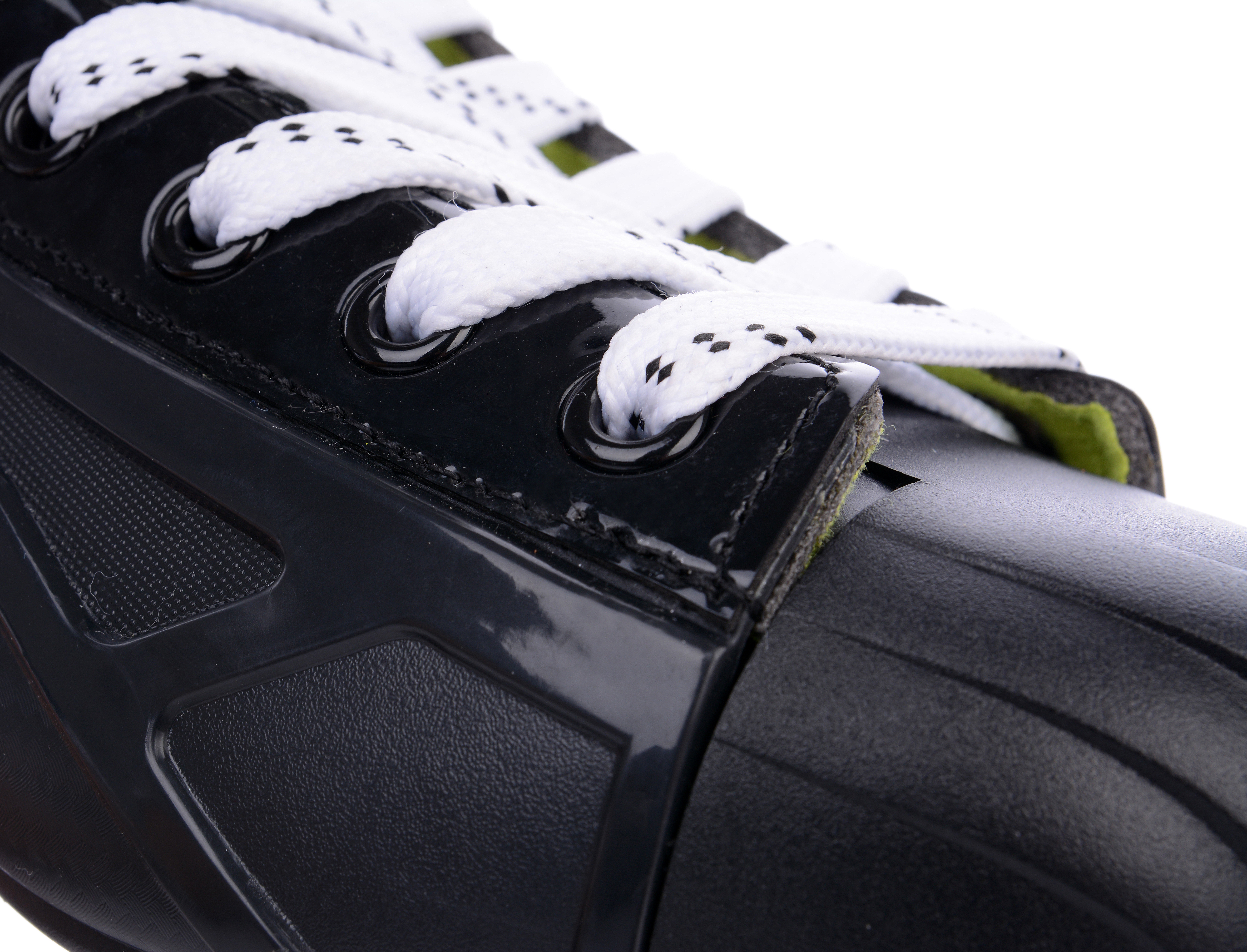 Корпус выполнен на основе уникальной конструкции, изготовленной из цельной заготовки прочного композитного пластика, который обеспечивает переменную жесткость и фиксирует стопу без негативных ощущений для пользователя. Облегченный каркас одновременно прочный и износостойкий, хорошо защищает ногу от импульсных нагрузок, например попадания шайбой или клюшкой, которые часто происходят на льду во время игры.