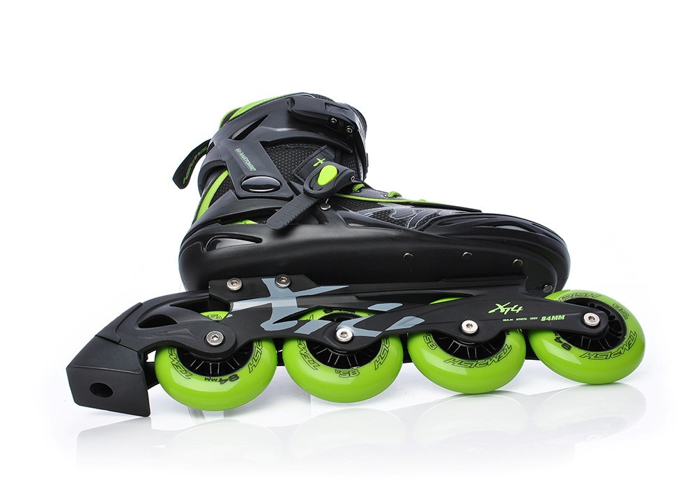Коньки оснащены колесами серии RADICAL 84 мм, которые характеризуются чрезвычайно низким сопротивлением качению и долговечностью, а высокоточные надежные подшипники класса АВЕС 7 Chrome Steel обеспечивают быстрый набор максимальной скорости и превосходный накат.