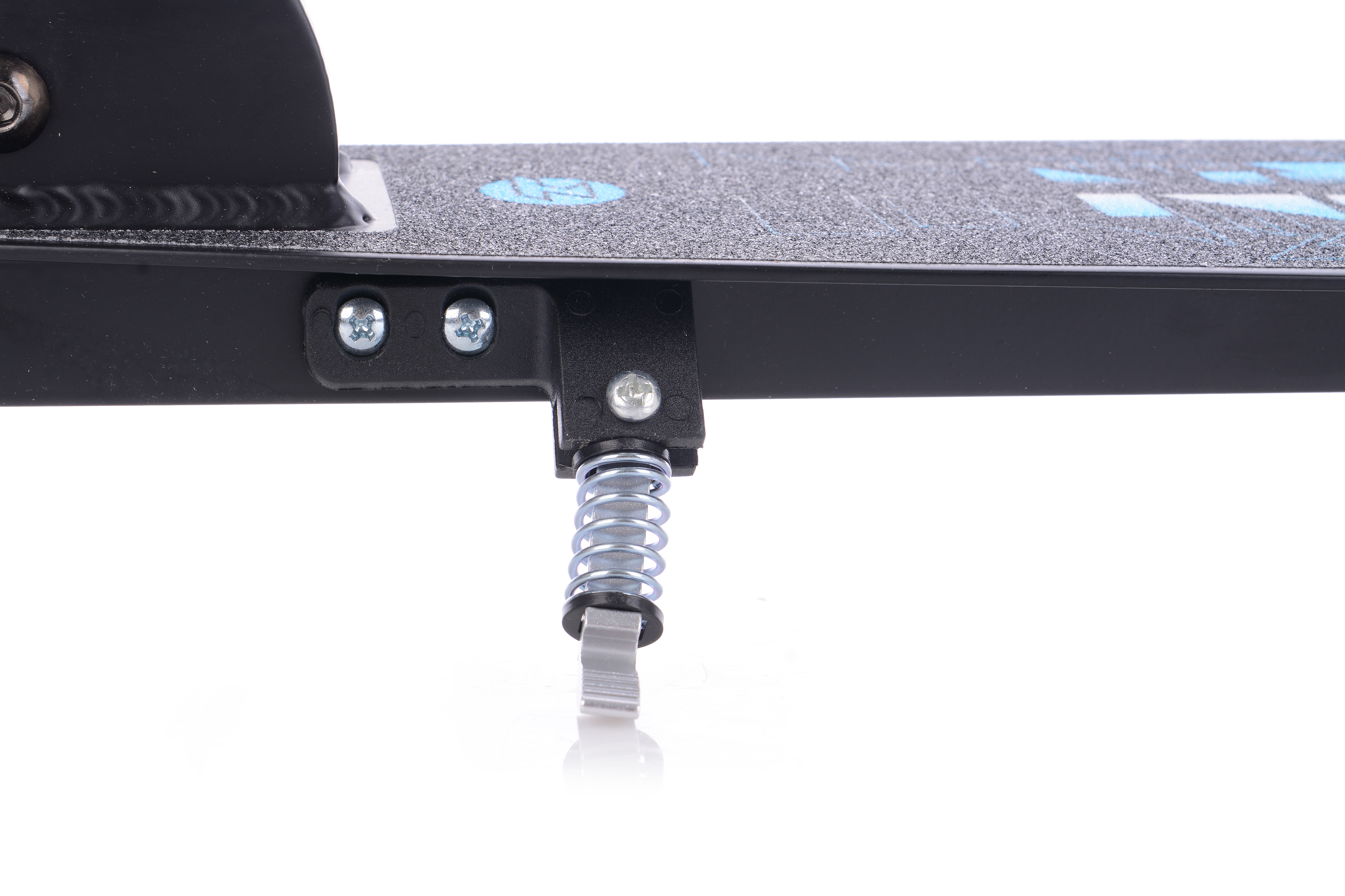 Торможение осуществляется за счет ножного заднего тормоза. Он также, как и передняя защита, служит брызговиком, защищая райдера от грязи и воды летящих с колес.
