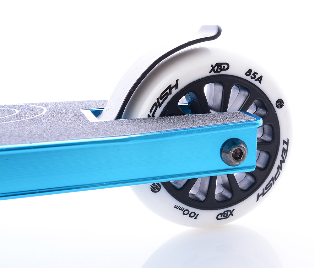 Самокат оснащен полиуретановыми колесами Hi-rebound диаметром 100 мм и жесткостью 85A с усиленной ступицей из кованого алюминиевого сплава и подшипниками класса ABEC 7 Chrome Steel, которые обеспечивают отличный накат и быстрый набор максимальной скорости.