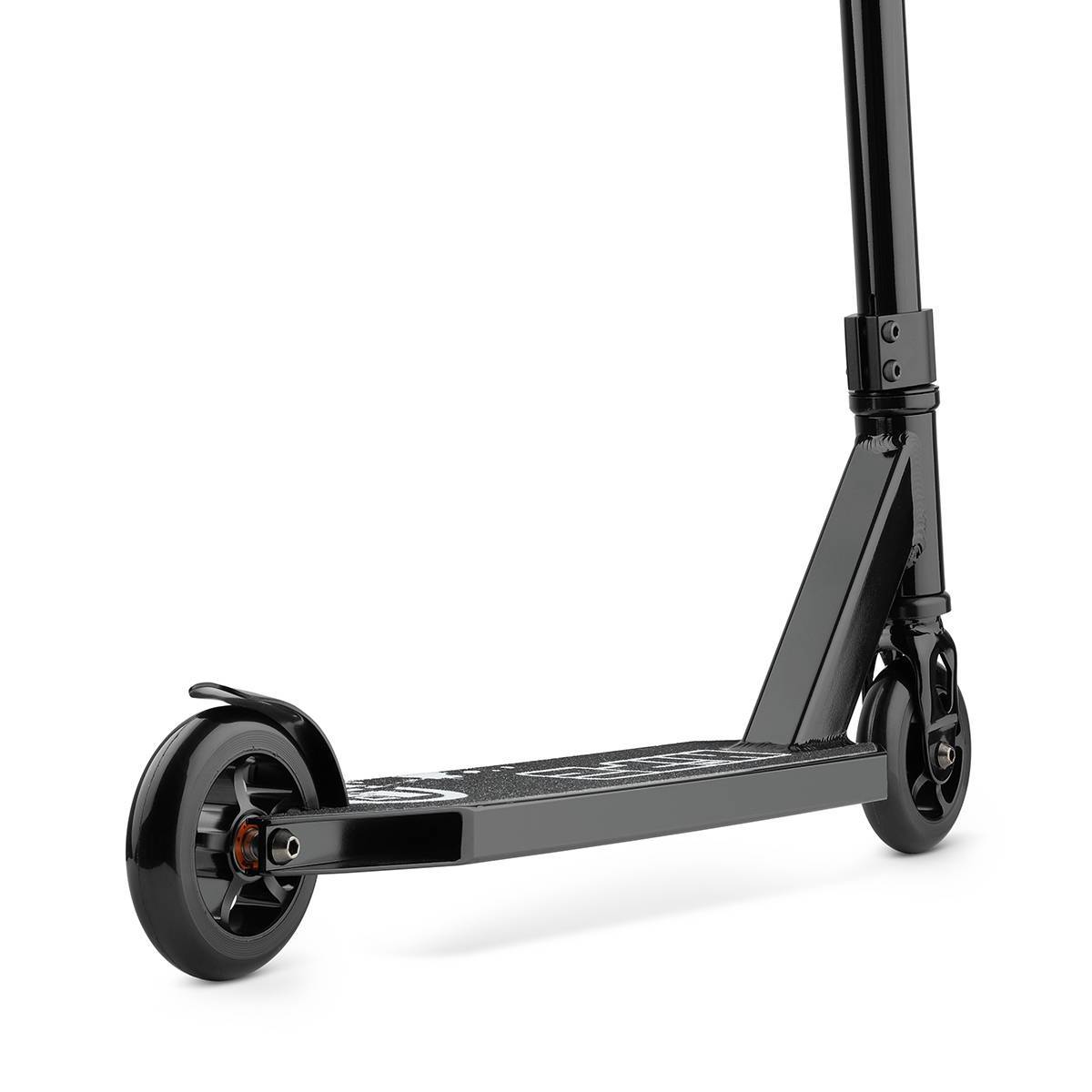 Износоустойчивые и долговечные колеса с диаметром 100 мм с пластиковым внутренним основанием делают самокат максимально маневренным. Полиуретановые колеса с индексом жесткости 82А - это оптимальный баланс между износостойкостью и отличным сцеплением с трассой. Контролировать скорость и остановиться позволяет задний металлический тормоз.