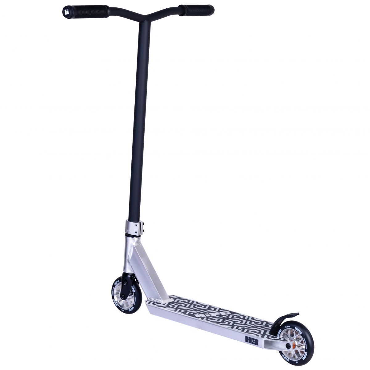 Hipe H3 - качественный комплит для новичков и любителей, рассчитанный на рост от 120 до 160 см. Оборудован широкой декой и лонжеронами на днище, которые имеют скошенные края, делая скольжение по препятствиям более простым. Высокопрочный руль из хромомолибденовой стали, хоть и тяжеловат, но вес компенсируется другими элементами. Эти особенности делают модель идеальной для парковой дисциплины.