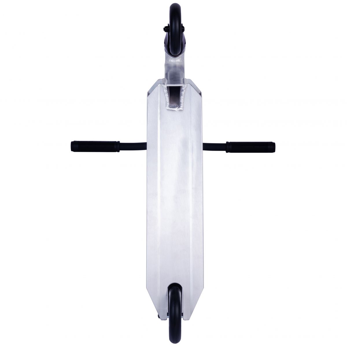 Материал деки, как у большинства подобных моделей - это высококачественный авиационный алюминий. Хоть такой сплав сложнее поддается обработке, результат такой детали впечатляющий, именно поэтому его используют для формирования деки под трюковый самокат. Он прочный и легкий, имеет высокие показатели упругости, текучести и прочности.