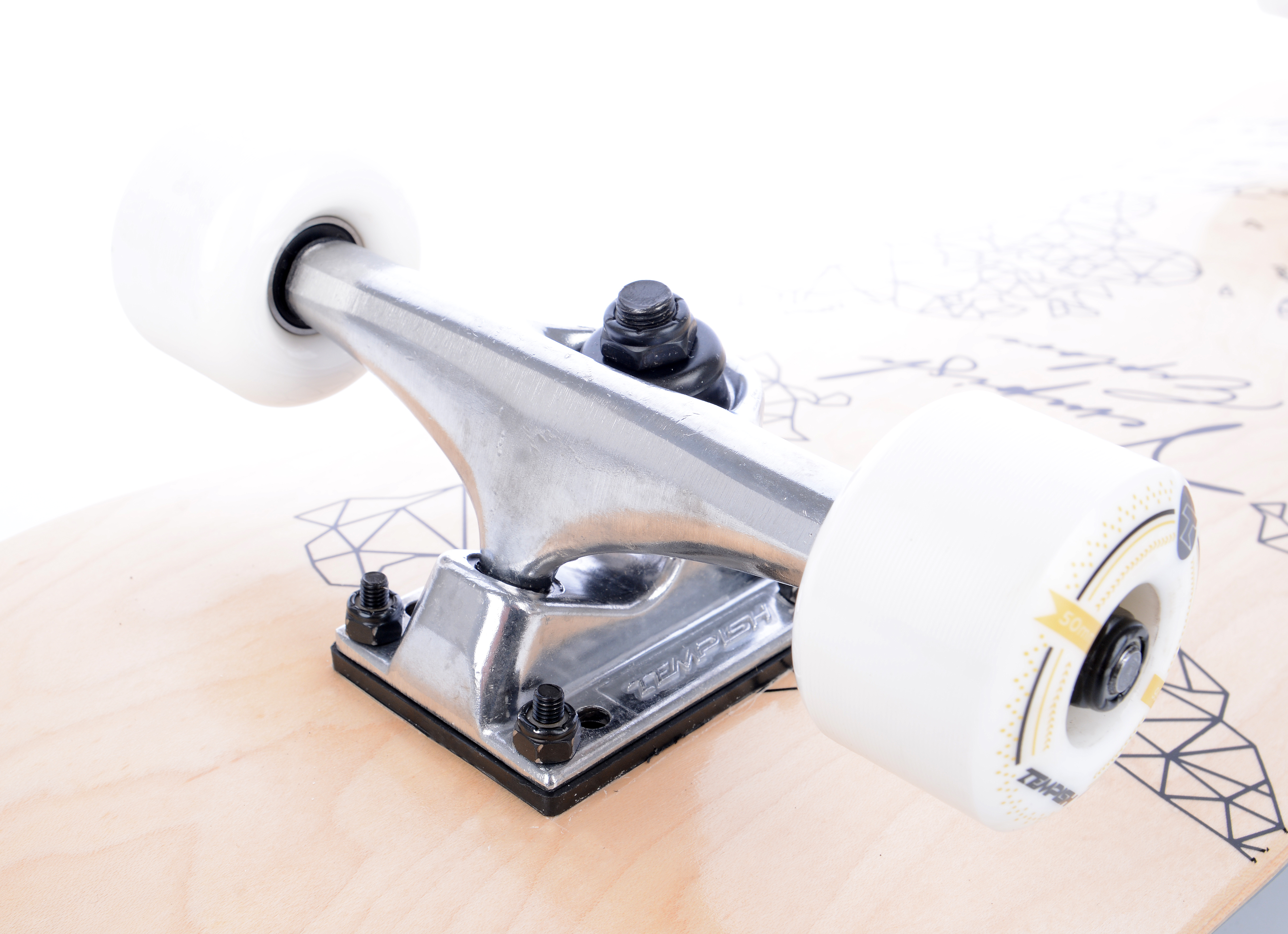 Чтобы райдер надежно держался на доске, на ней имеется зернистое покрытие 80AB, которое предотвращает скольжение ног при активном выполнении элементов. Амортизация подвески достаточно жесткая и идеально подойдет для ровных дорог и быстрых движений. Колеса имеют жесткость в 99А, они популярны для использования в парке и на улице, так как обеспечивают хорошее сочетание скорости и сцепления.