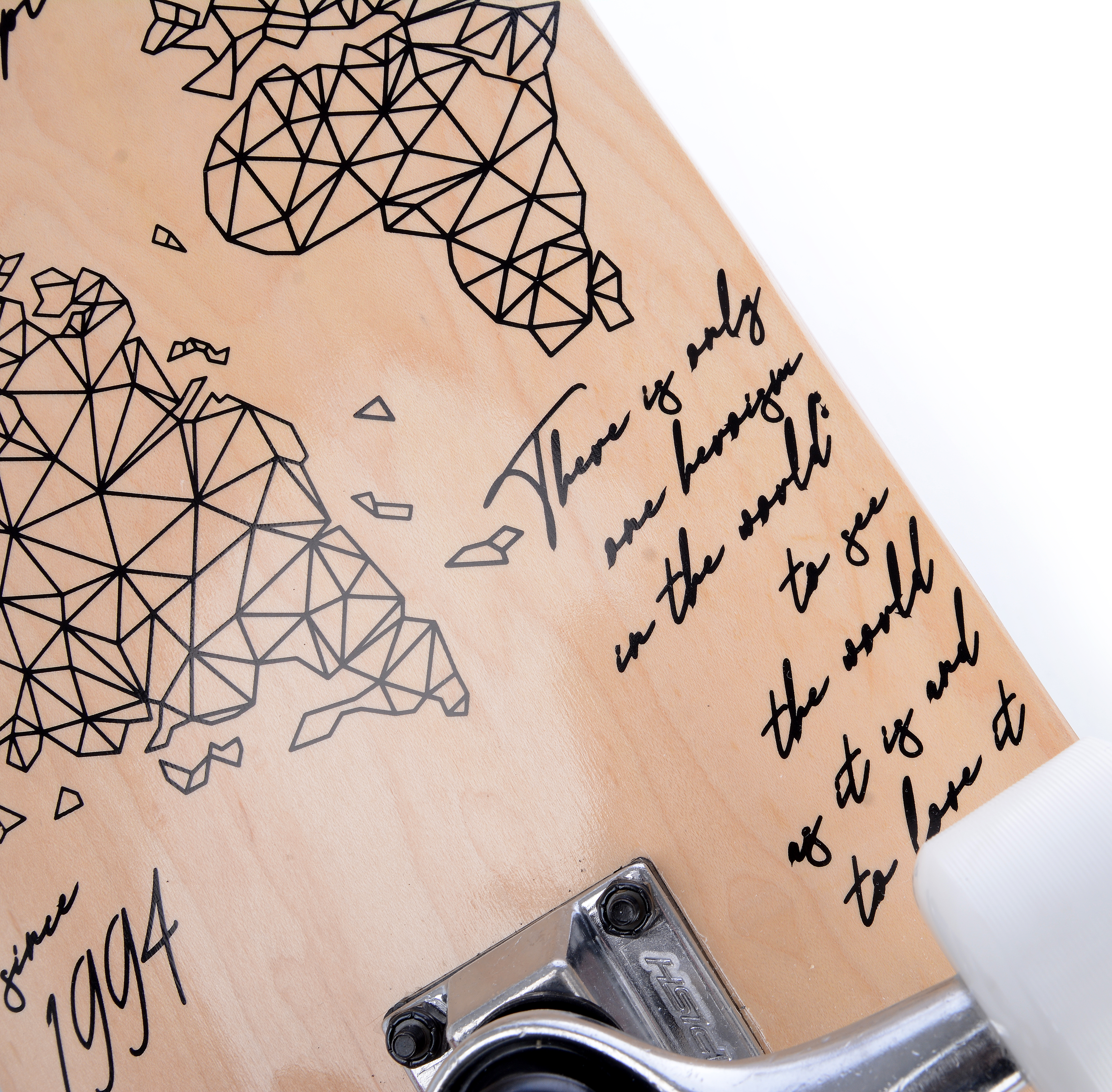 Как и большинство скейтбордов, он имеет двойной киктейл овальной формы и стандартный конкейв, они позволяют лучше маневрировать и выполнять различные элементы. Выполнен из семи слоев высококачественного канадского клена, которые придает доске высокую жесткость и прочность. Один из слоев дерева окрашен в черный цвет.