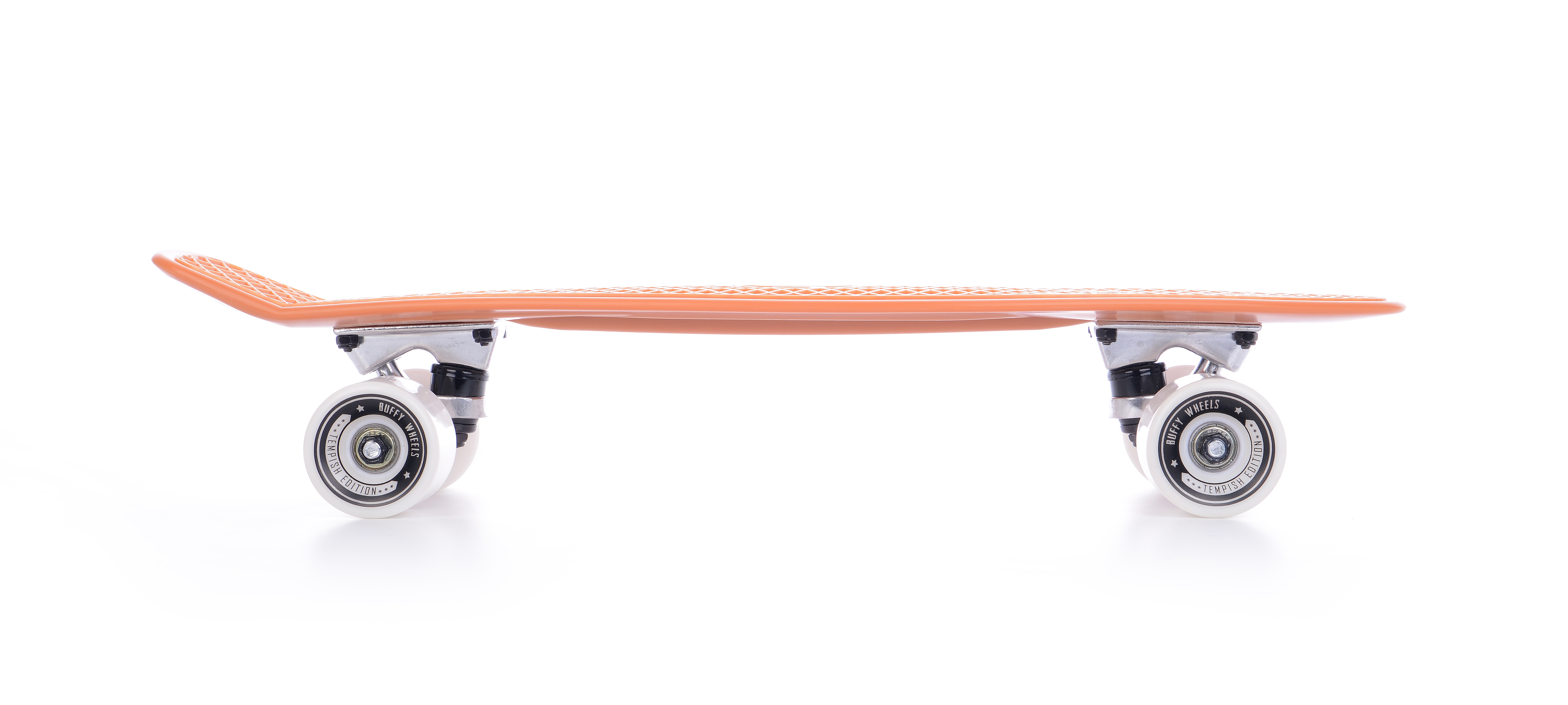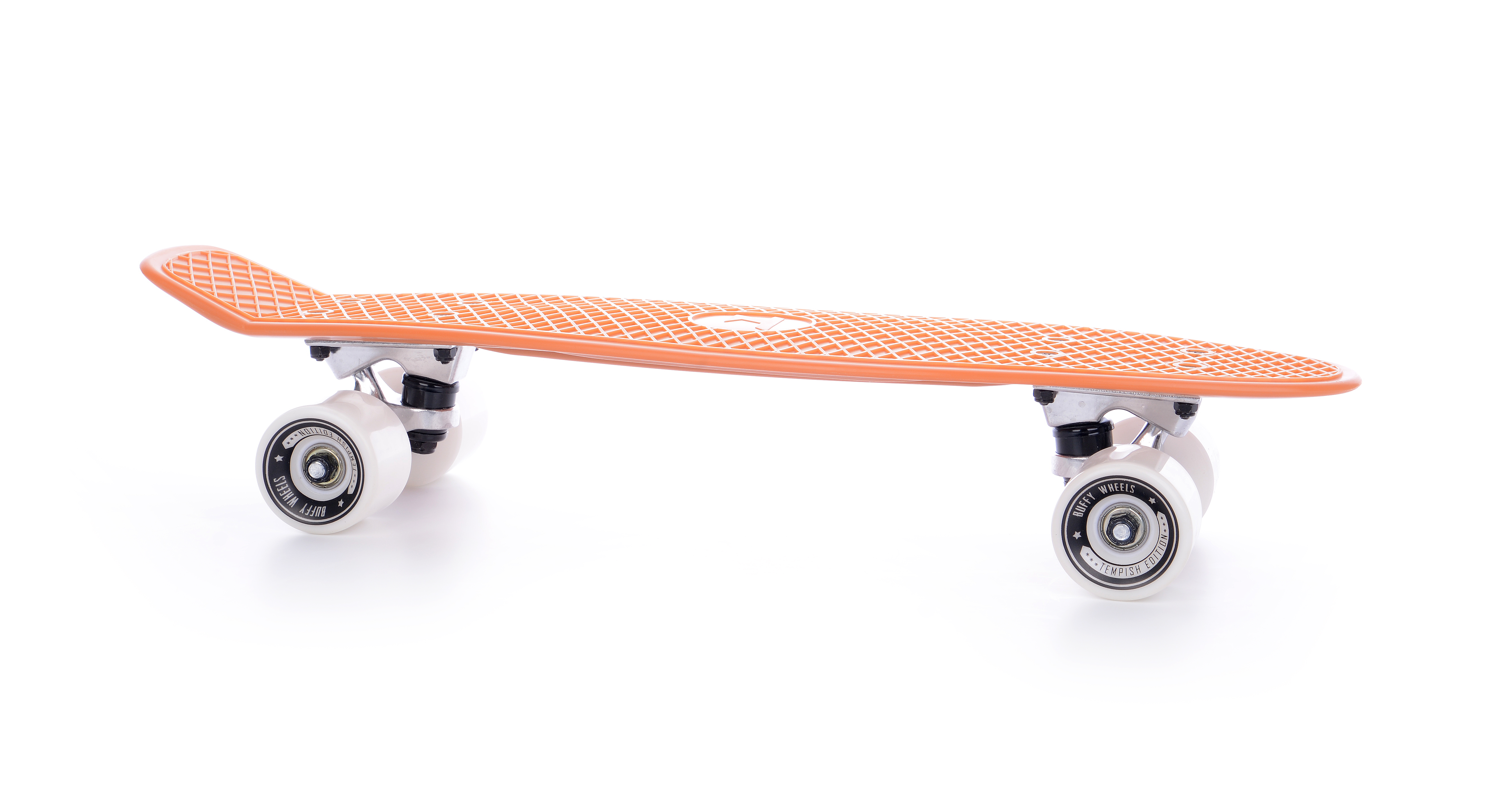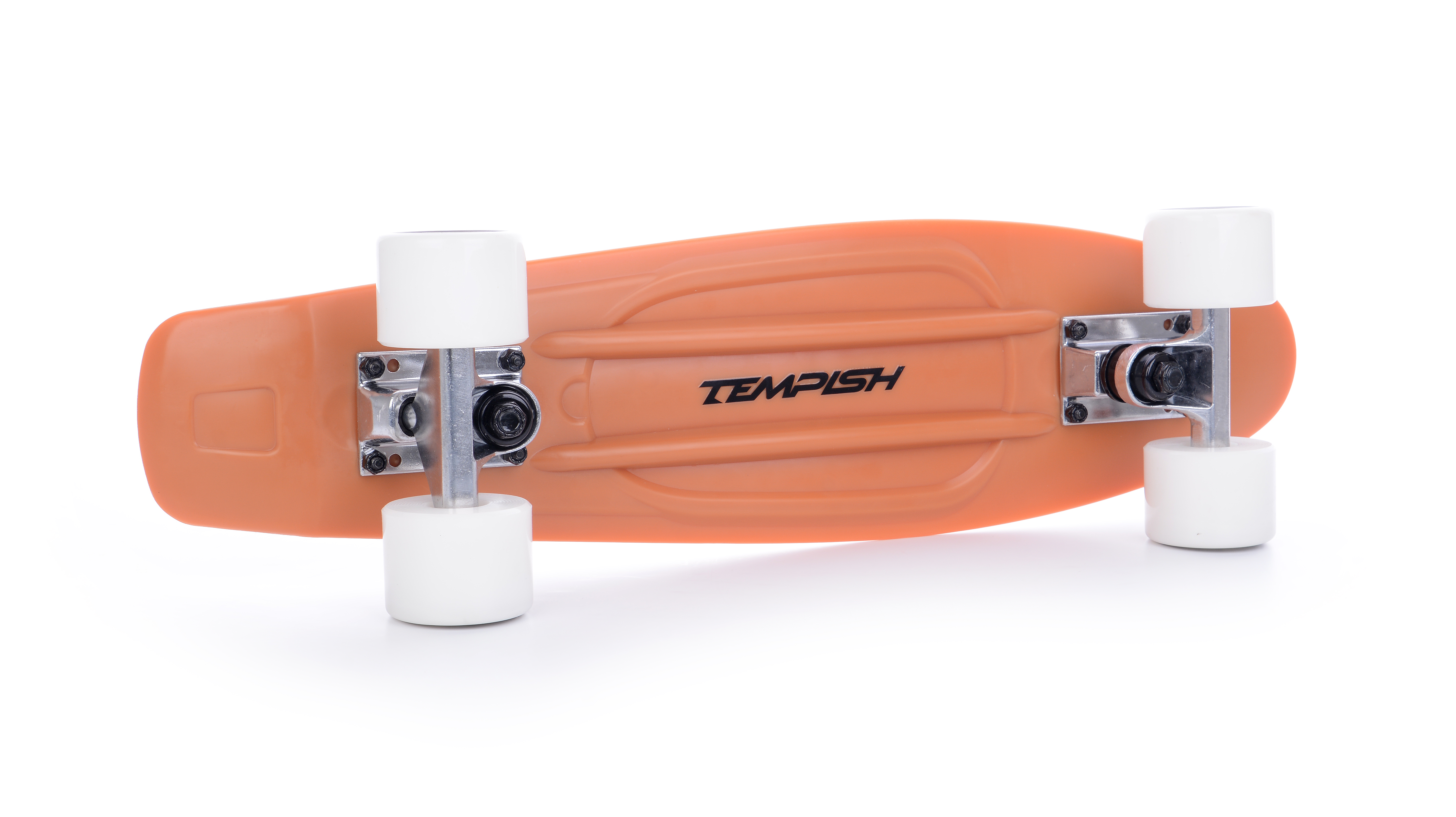 Материалом для деки служит ударопрочный полипропилен, пластинчатый полимер, который обладает высокой прочностью и устойчивостью к растрескиванию. Сам по себе материал более легкий по сравнению с пластмассой. Такая доска отлично гасит вибрации от неровного асфальта, что способствует лучшему управлению. Форма доски - прямая, с киктейлом. Киктейл способствует более резким поворотам и некоторым трюкам. В качестве удерживающего ноги покрытия выступает рифленая структура поверхности деки.