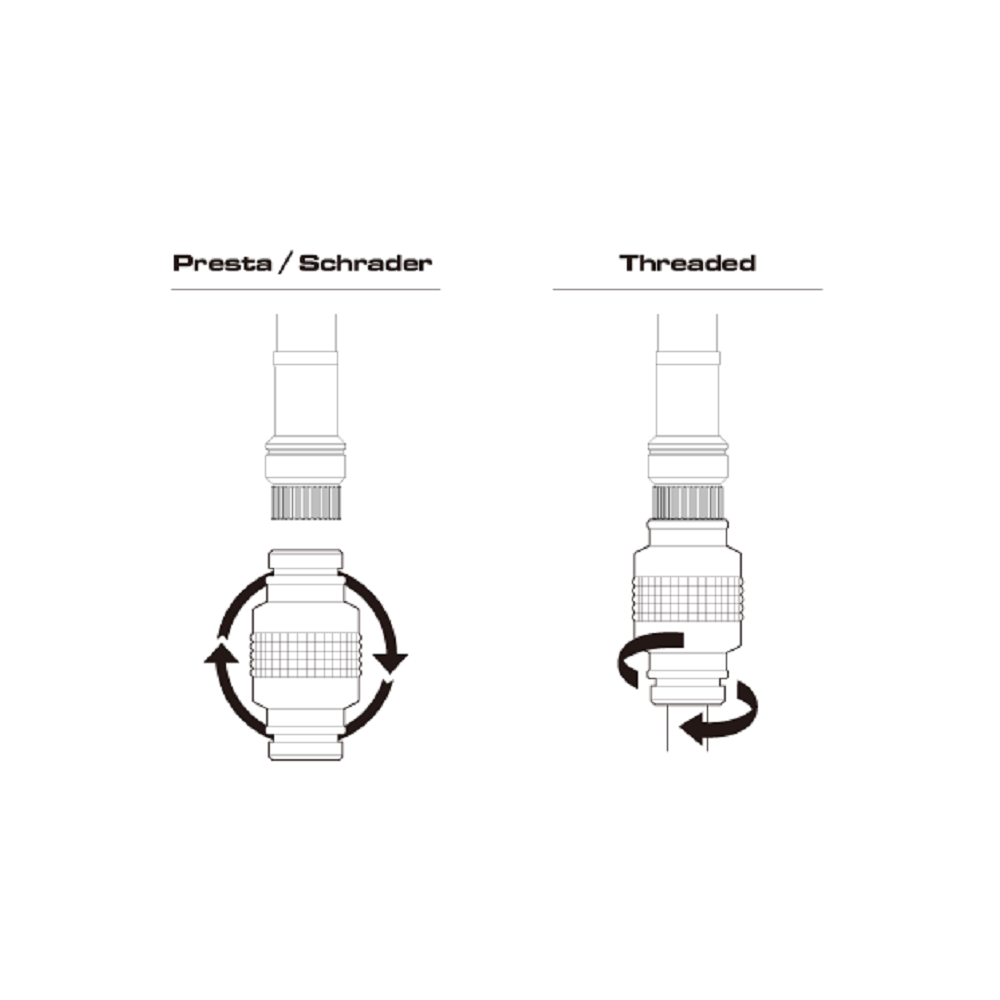 Резьбовая головка клапана имеет специальную конструкцию и подключается двумя простыми движениями. Она совместима с двумя самыми распространенными типами ниппеля, а именно: Presta и Schrader (Автомобильный). Гибкий шланг поможет использовать насос в большинстве ситуаций и во многих слабо доступных зонах.