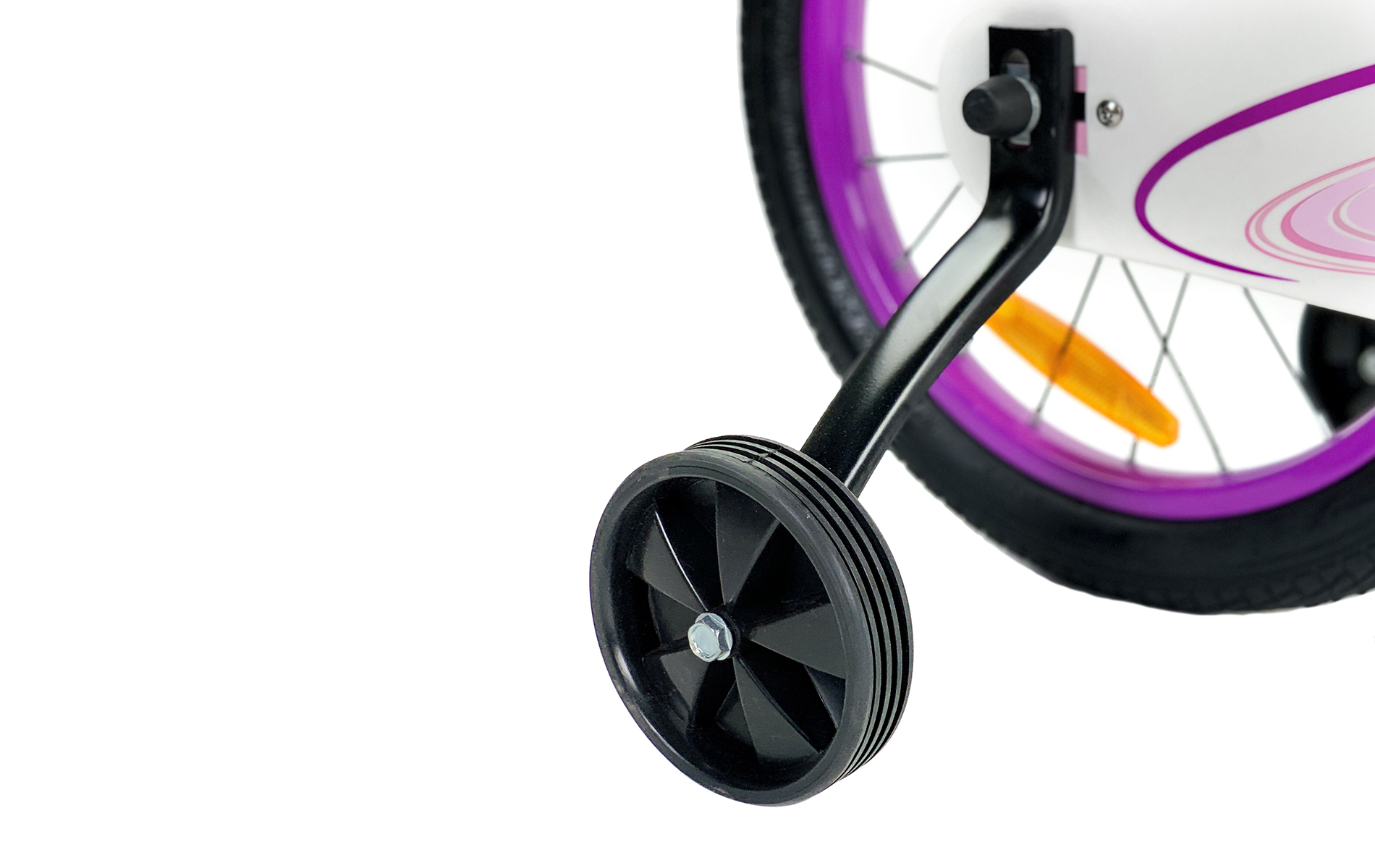 На байк установлена ригидная вилка. Она легкая и прочная, обеспечивает повышенную жесткость передней части велосипеда, а следовательно и высокий контроль в управлении. Основным преимуществом подобной вилки выступает ускоренное повышение уровня езды неумелым маленьким велосипедистом. Амортизационная вилка покроет большинство ошибок при езде, но жесткая - нет. Использование жесткой вилки обезопасит Вашего ребенка в будущем от ошибок, а пока Ваш ребенок обучается, за его безопасность будут отвечать боковые колеса, которые идут в комплекте.
