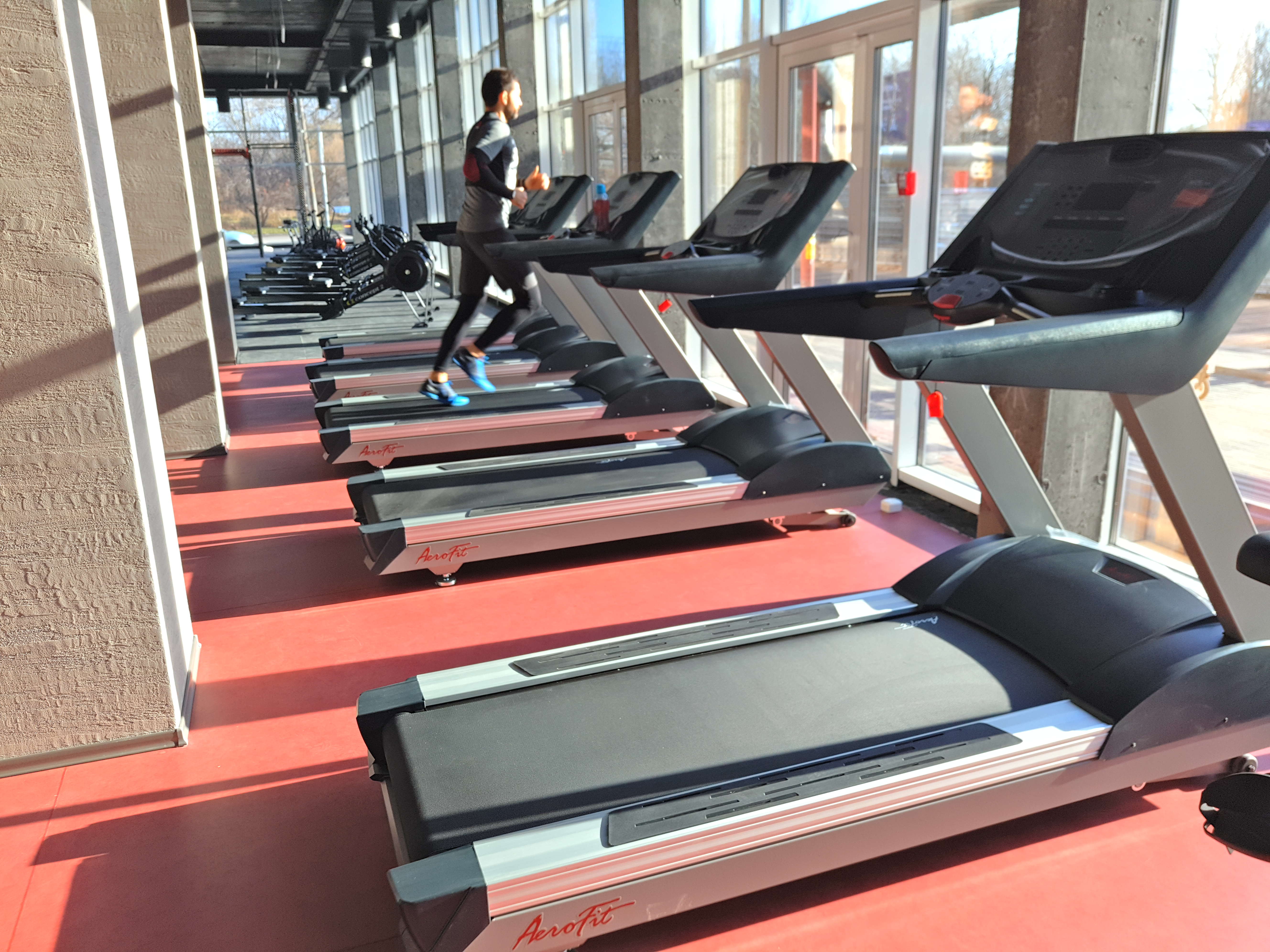 Просторная кардиозона представлена сверхсовременными беговыми дорожками Aerofit Professional с передовым программным обеспечением, развитым мультимедийным функционалом, сверх четкими жидкокристаллическими сенсорными дисплеями и новейшими технологическими решениями, которые соответствуют жестким требованиям фитнес-клубов с большой пропускной способностью и специализированных спортивных центров.