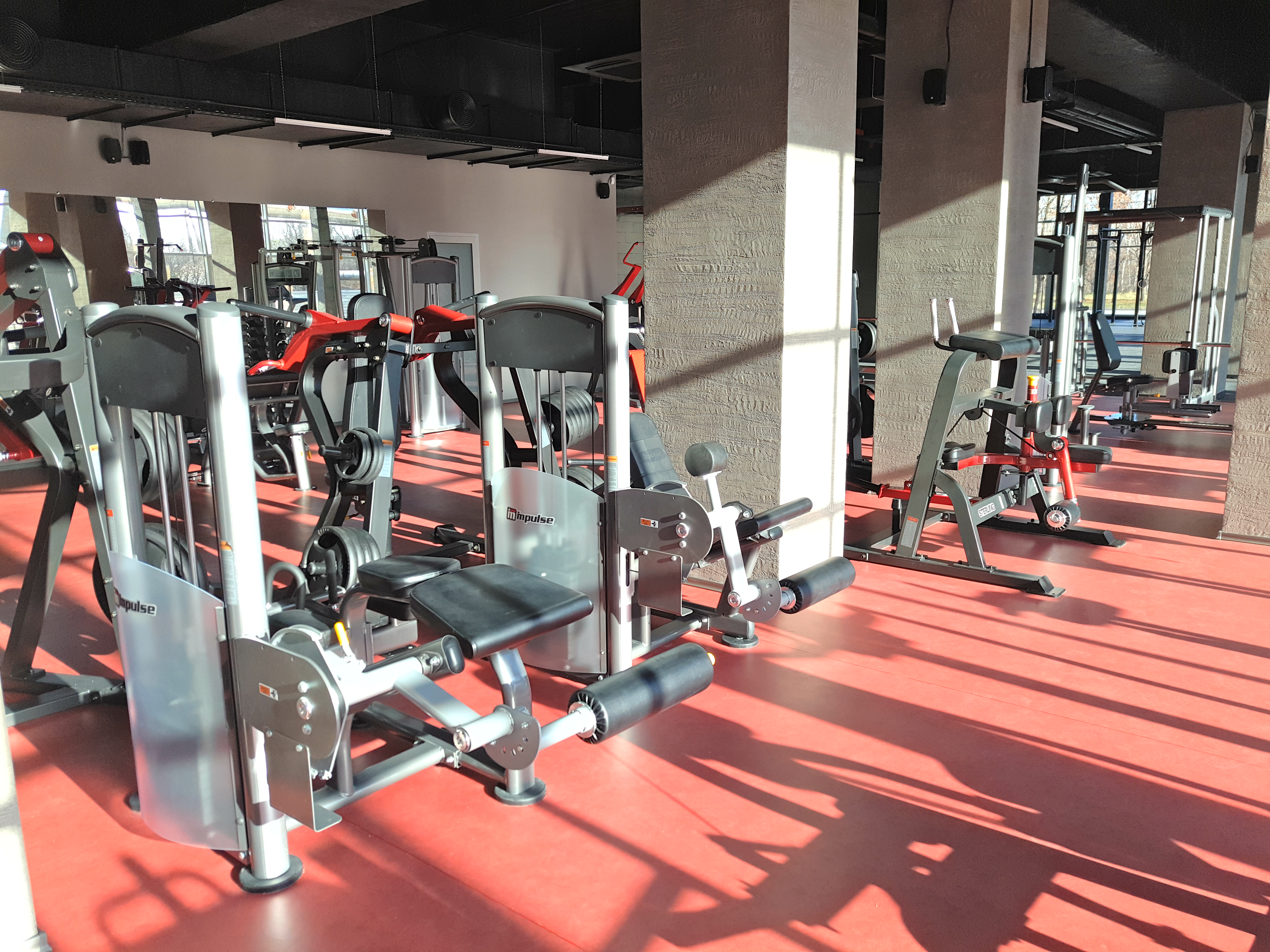 Тренажерный зал укомплектован современным оборудованием Impulse Max и Impulse Sterling, которое гарантирует безопасные, ощутимо продуктивные и максимально приятные занятия.