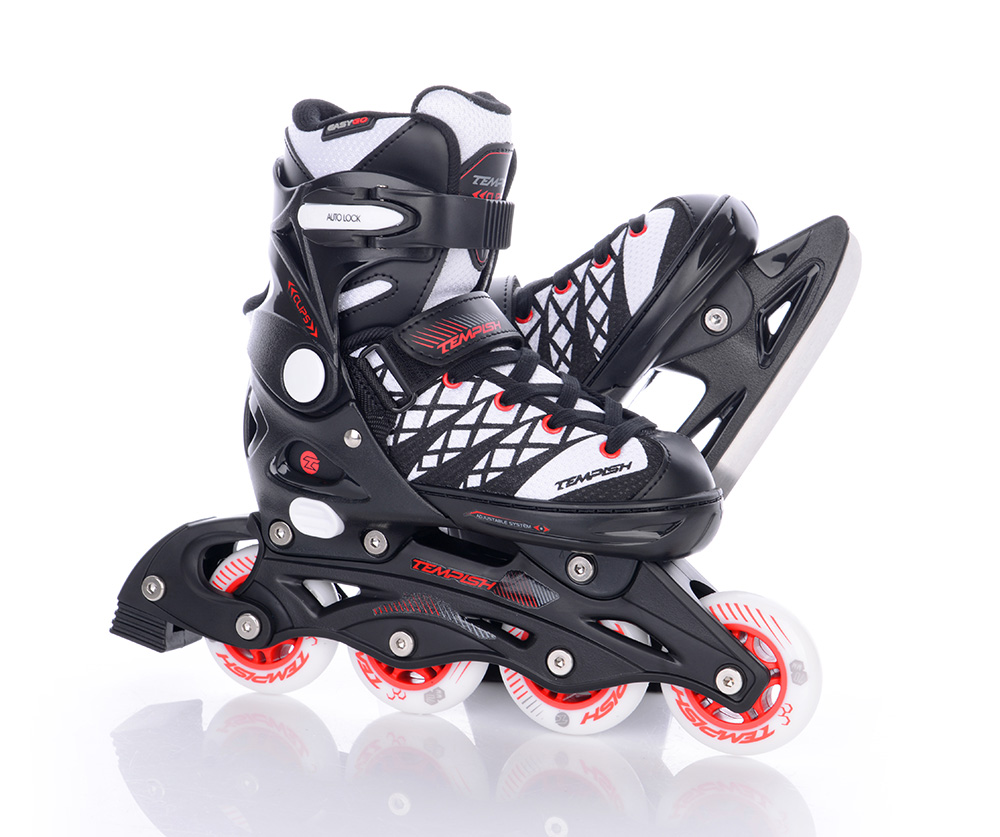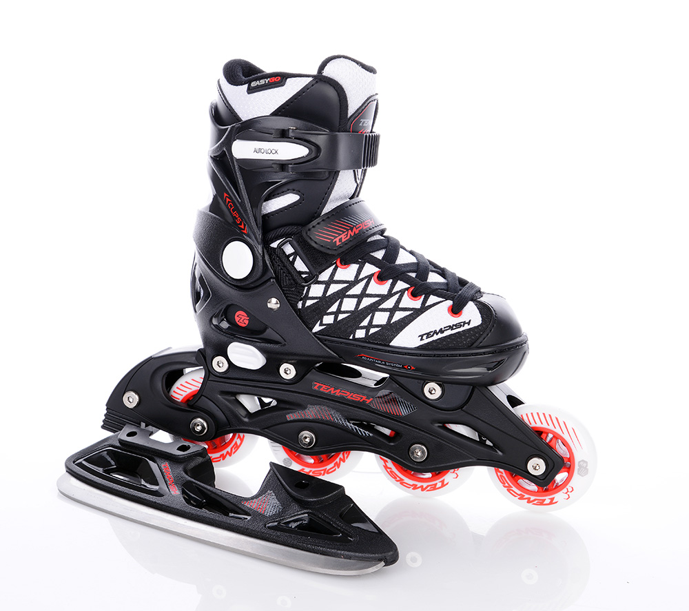 Tempish Clips Duo - дитячі ковзани для хлопчиків, призначені для початківців і просунутих ролерів і фігуристів. Конструкція системи дозволяє замінити Крижане лезо на колісне шасі і навпаки, що робить цю модель практичною в будь-який час року. Clips Duo виконані з морозостійкого пластику TPU, PVC і NYLON + NYLEX, що робить їх стійкими до температури аж до -20 ° C.