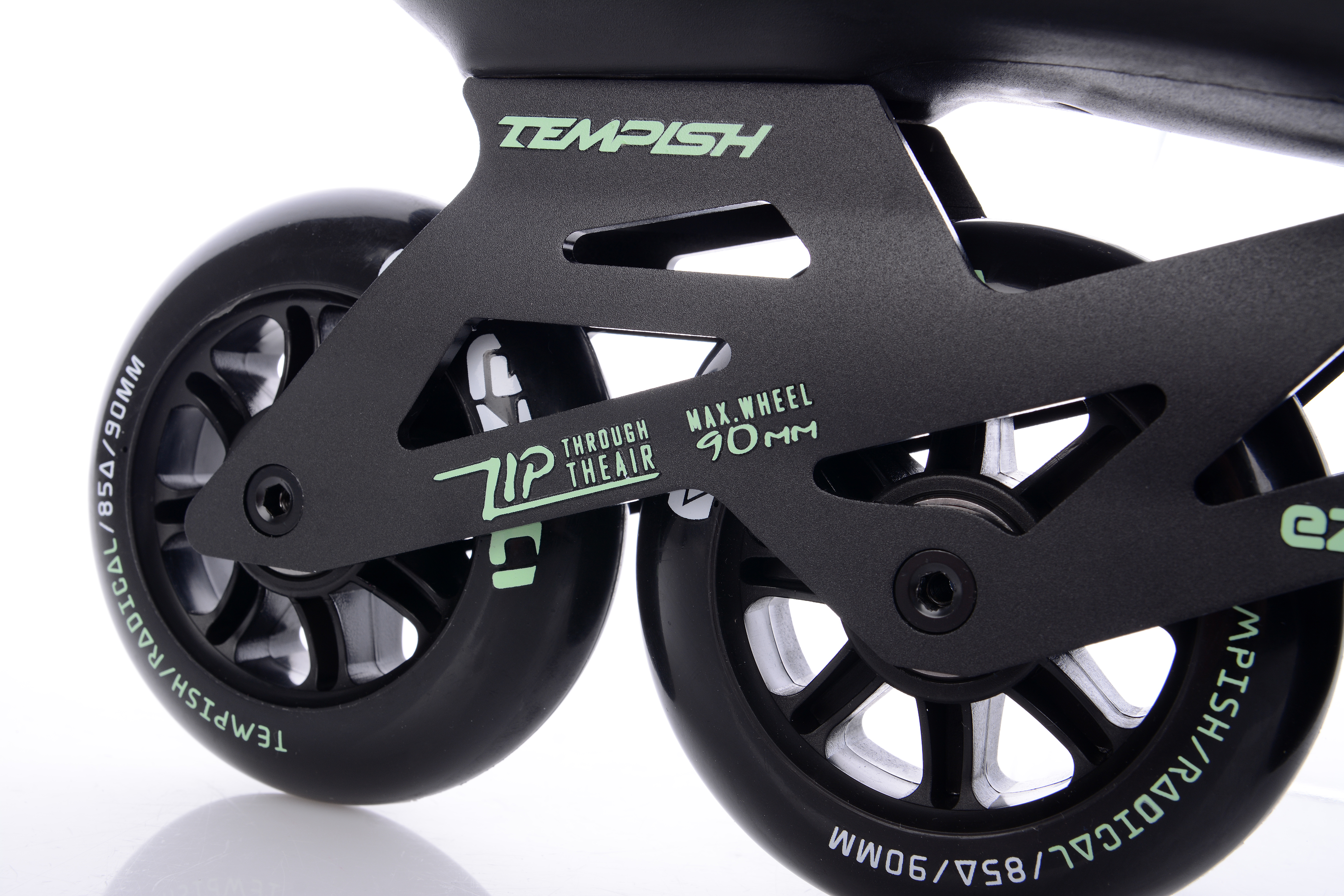 Модель обладнана високо прецизійними підшипниками класу точності ABEC 9. Вони виконані з вуглецевої сталі, мають великий запас міцності, а так як вони максимального класу, то їх продуктивність і точність можна оцінювати як ювелірну роботу. У сумі з колесами діаметром 90 мм ви зможете підтримувати досить високу швидкість і тривалість ковзань, а їх середня жорсткість в 85А - це баланс між зчепленням і хорошим накатом.