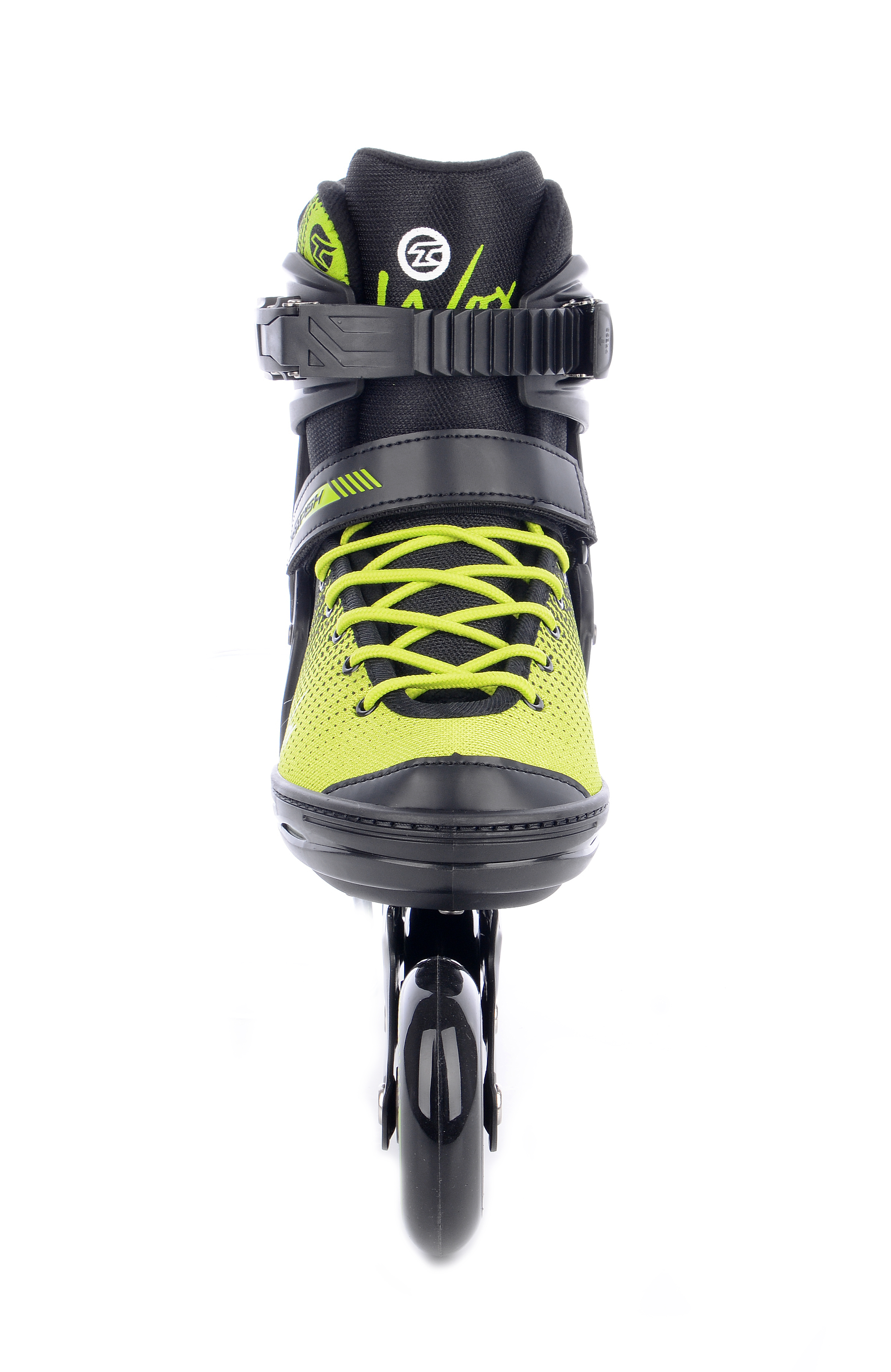 Фіксація черевика на нозі здійснюється за рахунок шнурівки, ременя на липучці, і ременя на авто застібці в зоні гомілки. Все разом це гарантує надійне утримання роликів на ногах без ризику зісковзувань. У задній частині, для комфорту, є петля. З її допомогою можна надягати і знімати взуття, а також переносити і зберігати. Світловідбиваючі елементи забезпечують додаткову безпеку, роблячи вас помітним в темний час доби.