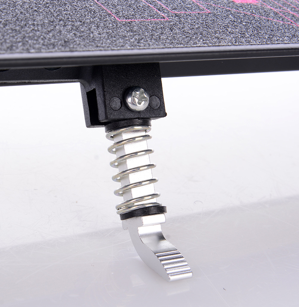 Гальмування здійснюється за рахунок ножного заднього гальма. Він також, як і передня захист, служить бризковиком, захищаючи райдера від бруду і води летять з коліс. Щоб під час зупинки або активного використання ноги не злітали з деки, вона обладнана дрібнозернистим покриттям-шкіркою.