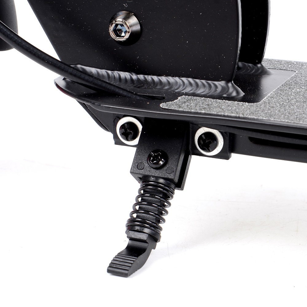 Гальмування здійснюється за рахунок ножного заднього гальма. Він також, як і передній захист, служить бризковиком, захищаючи райдера від бруду та води, що летять з коліс. Щоб під час зупинки чи активного використання ноги не злітали з деки, вона обладнана дрібнозернистим покриттям-шкіркою 80AB.