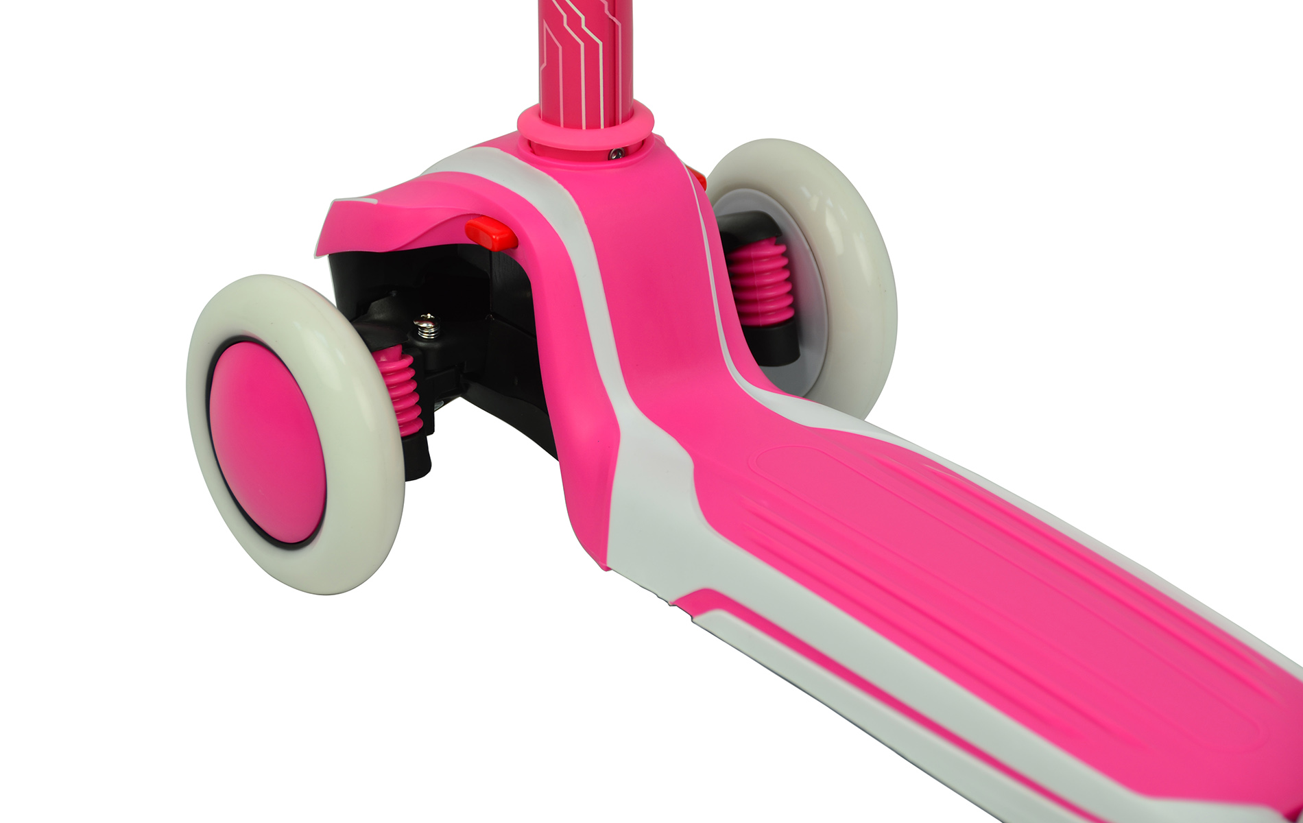 - широкі передні колеса з поліуретану шириною 30 мм для кращого накату і згладжування нерівностей, підсвічуються під час руху (батарейки не потрібні).