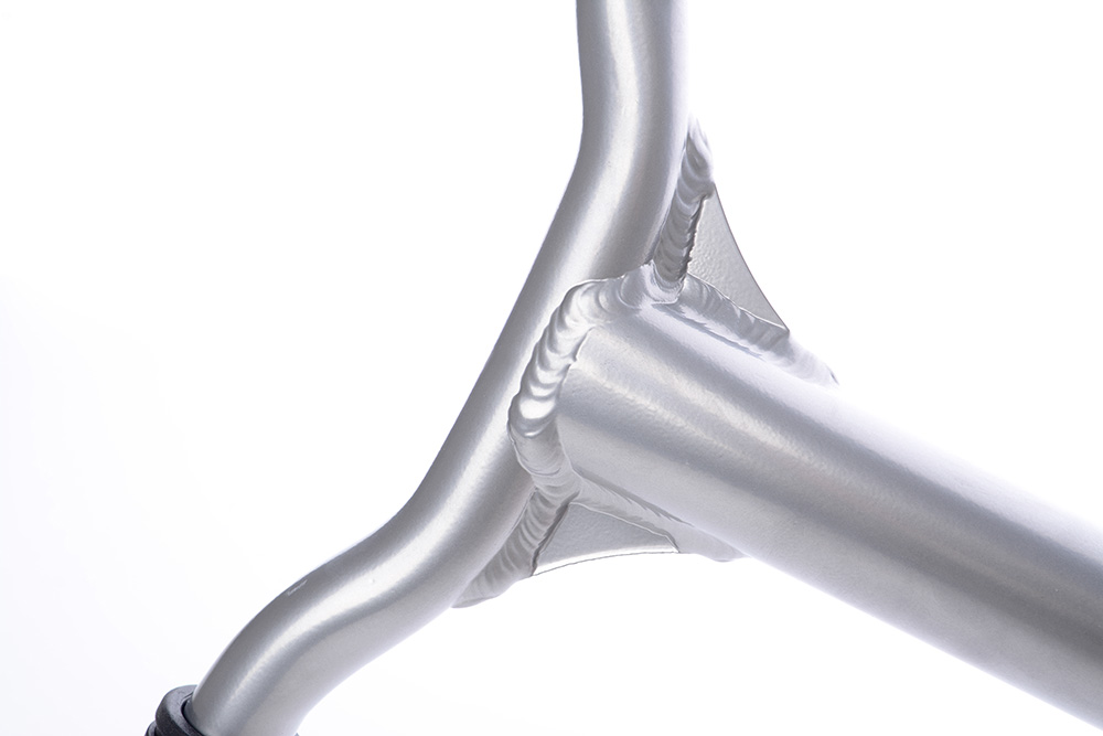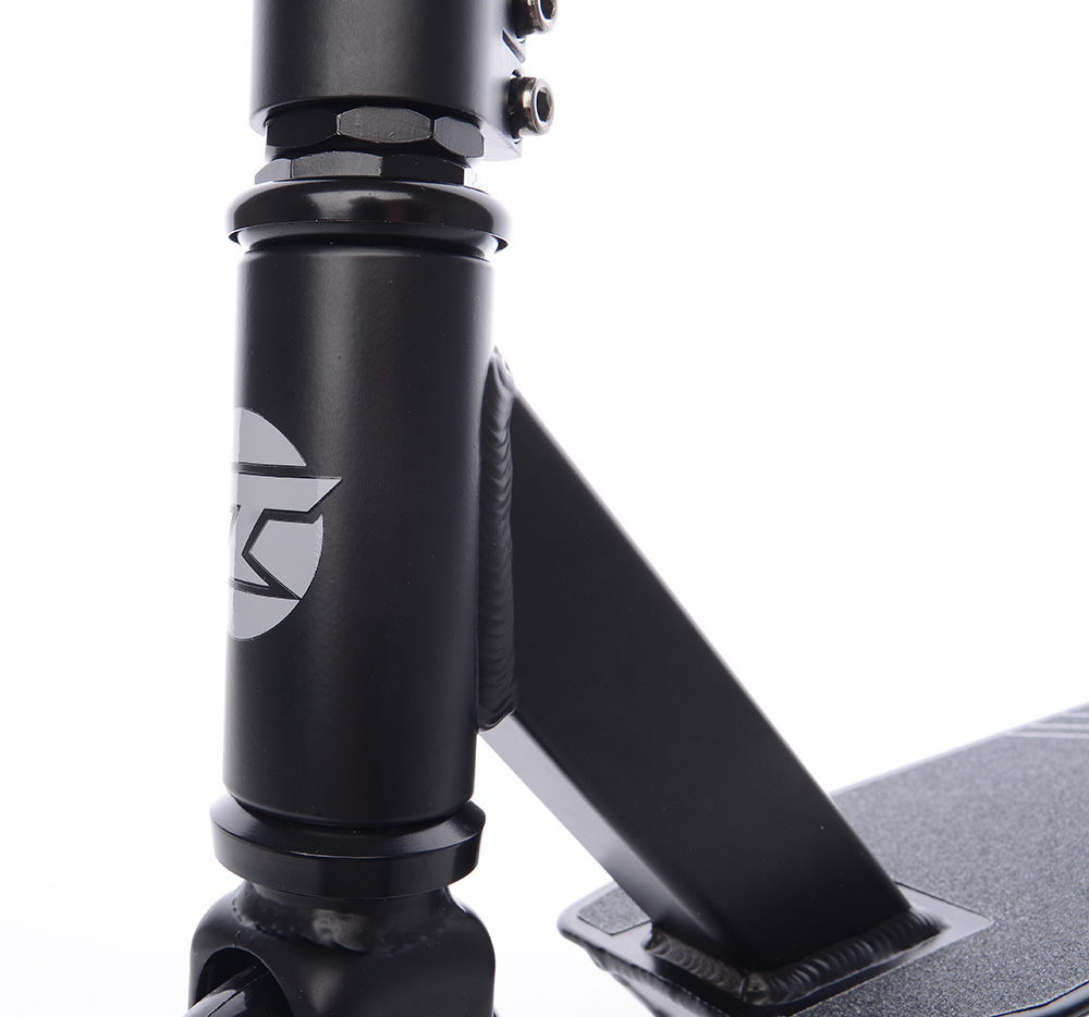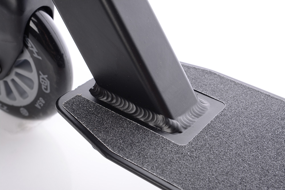 Дека, рульова колонка і кермо виконані з кованого алюмінієвого сплаву і готові витримувати високі навантаження і удари при катанні в рампі або скейт парку. Компресійна система SCS (Standart Compression System) - відмінний варіант для трюкових самокатів високого рівня, вона розрахована витримувати сильні удари і перевантаження.