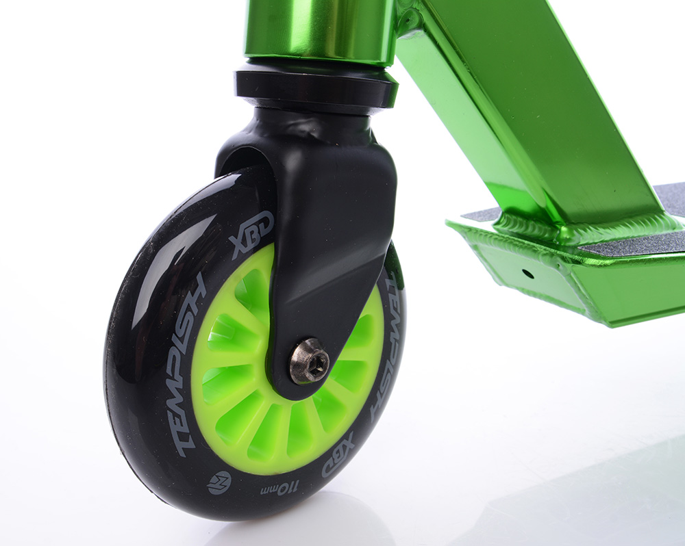 Tempish XBD Elox 110 - якісний самокат для фрістайлу і екстремальних стрибків на твердих поверхнях. Він оснащений високоякісними колесами діаметром 110 мм, хромованими підшипниками і чутливою амортизацією.