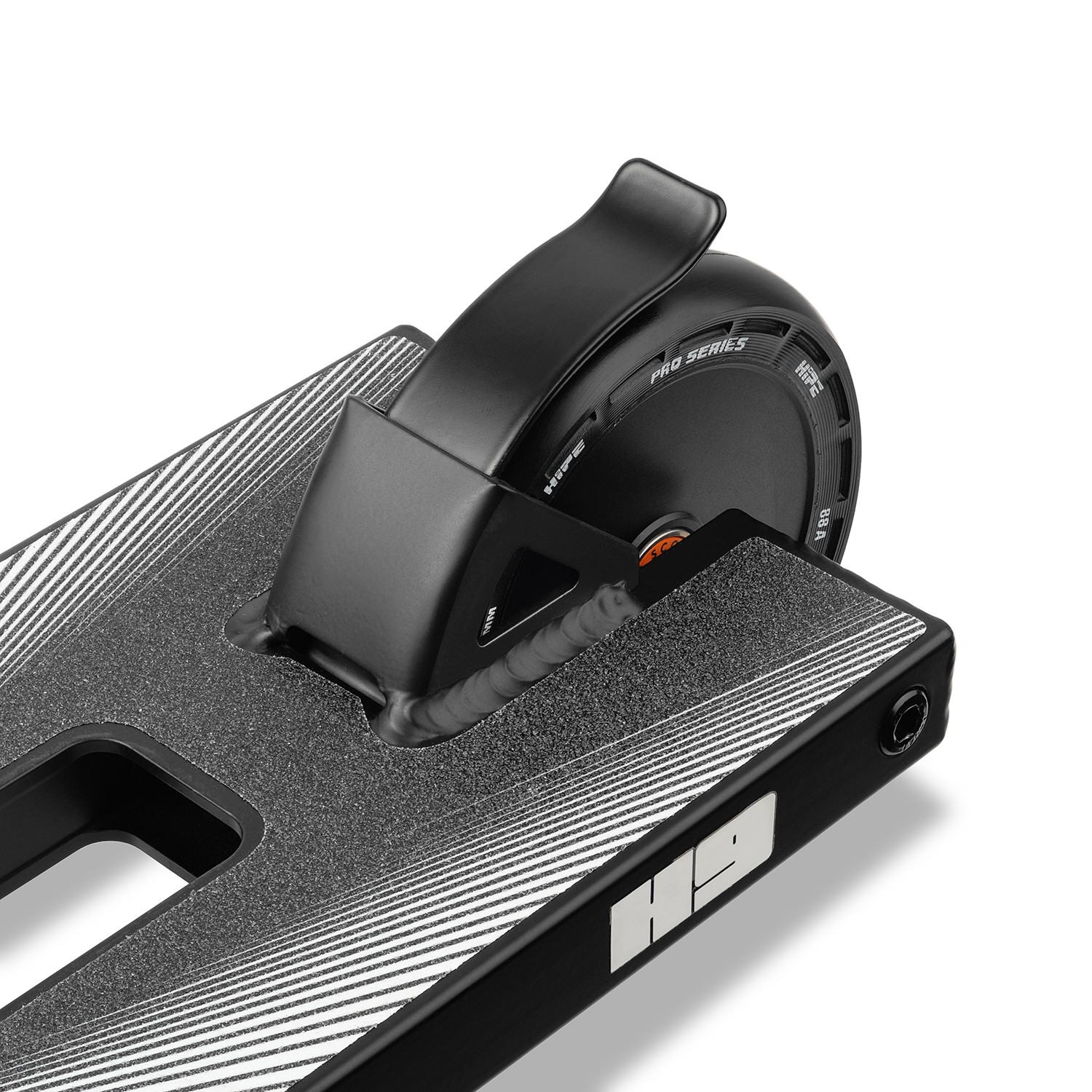 Матеріал деки, як у більшості подібних моделей - це високоякісний авіаційний алюміній. Хоч такий сплав складніше піддається обробці, результат такої деталі вражаючий, саме тому його використовують для формування деки під трюковий самокат. Він міцний і легкий, має високі показники пружності, плинності і міцності. Додатково, дека має виріз по центру для зниження ваги, а її габарити дозволяють виконувати ефектні ковзання з високим контролем.