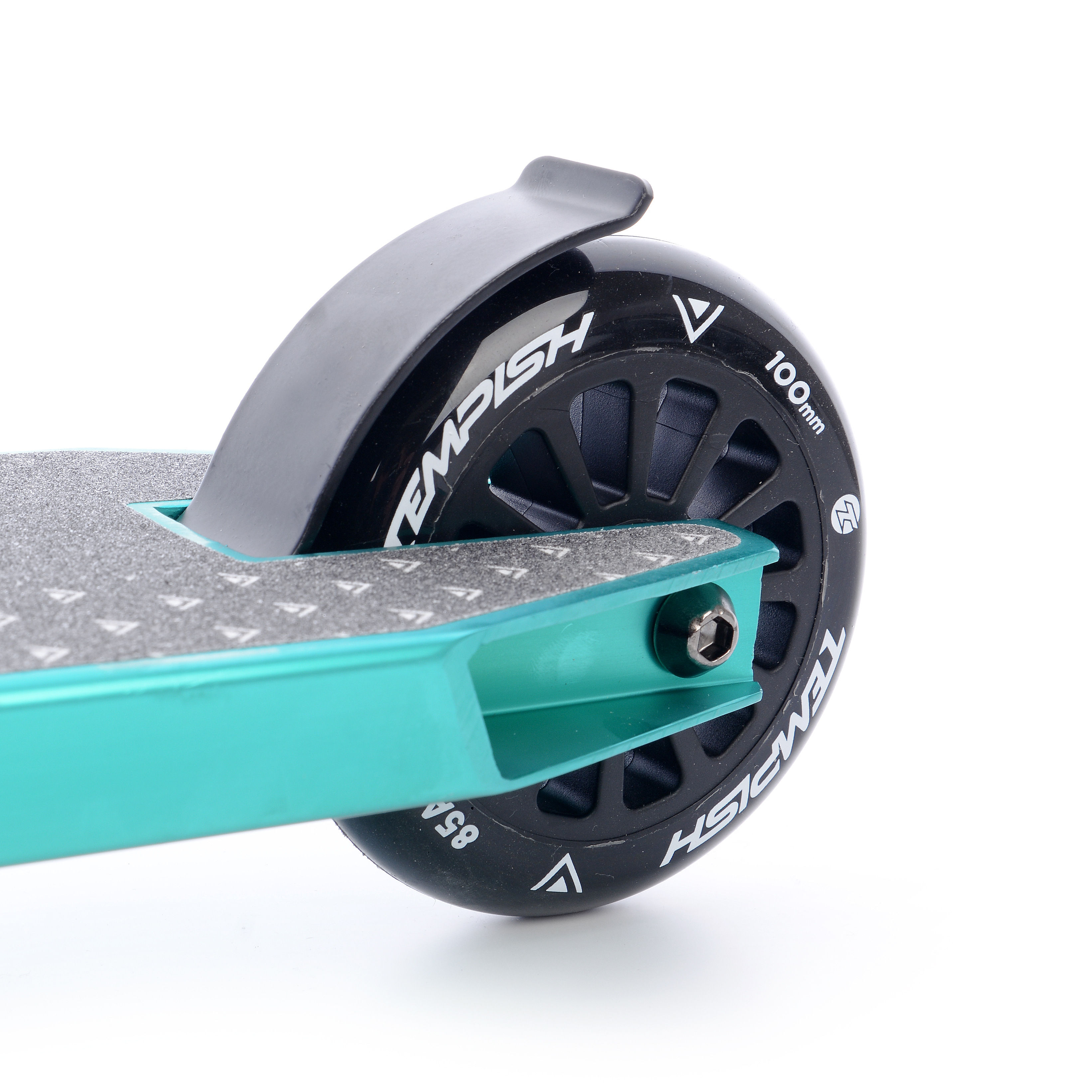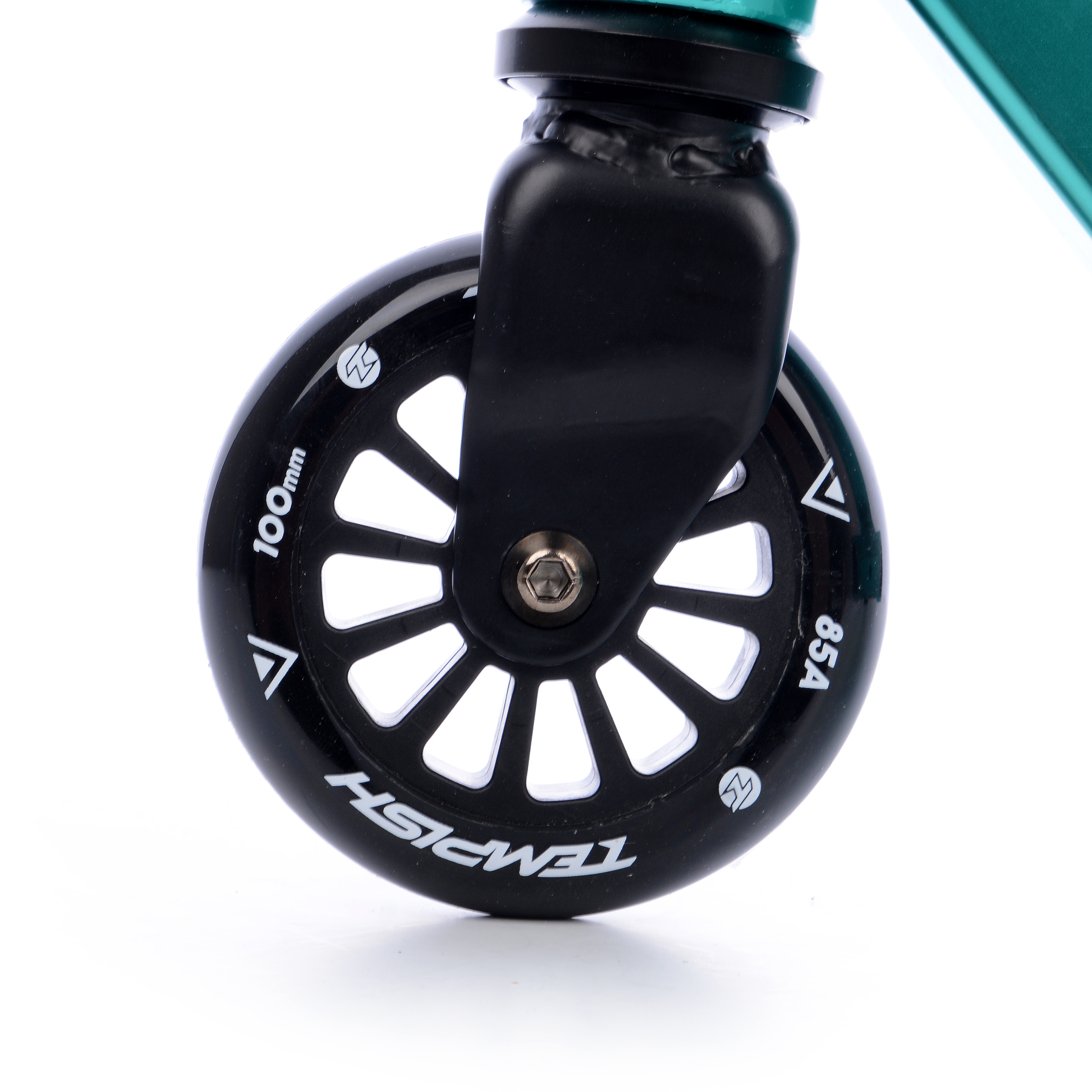 На самокат встановлені колеса на спицевих дисках діаметром 100 мм, з геліком жорсткістю 85А. такий діаметр коліс забезпечує відмінну маневреність, але жертвує швидкістю. Гелік виконаний з м'якого термополіуретану, що в силу амортизаційних властивостей, робить його ідеальним варіантом для асфальтованого покриття.