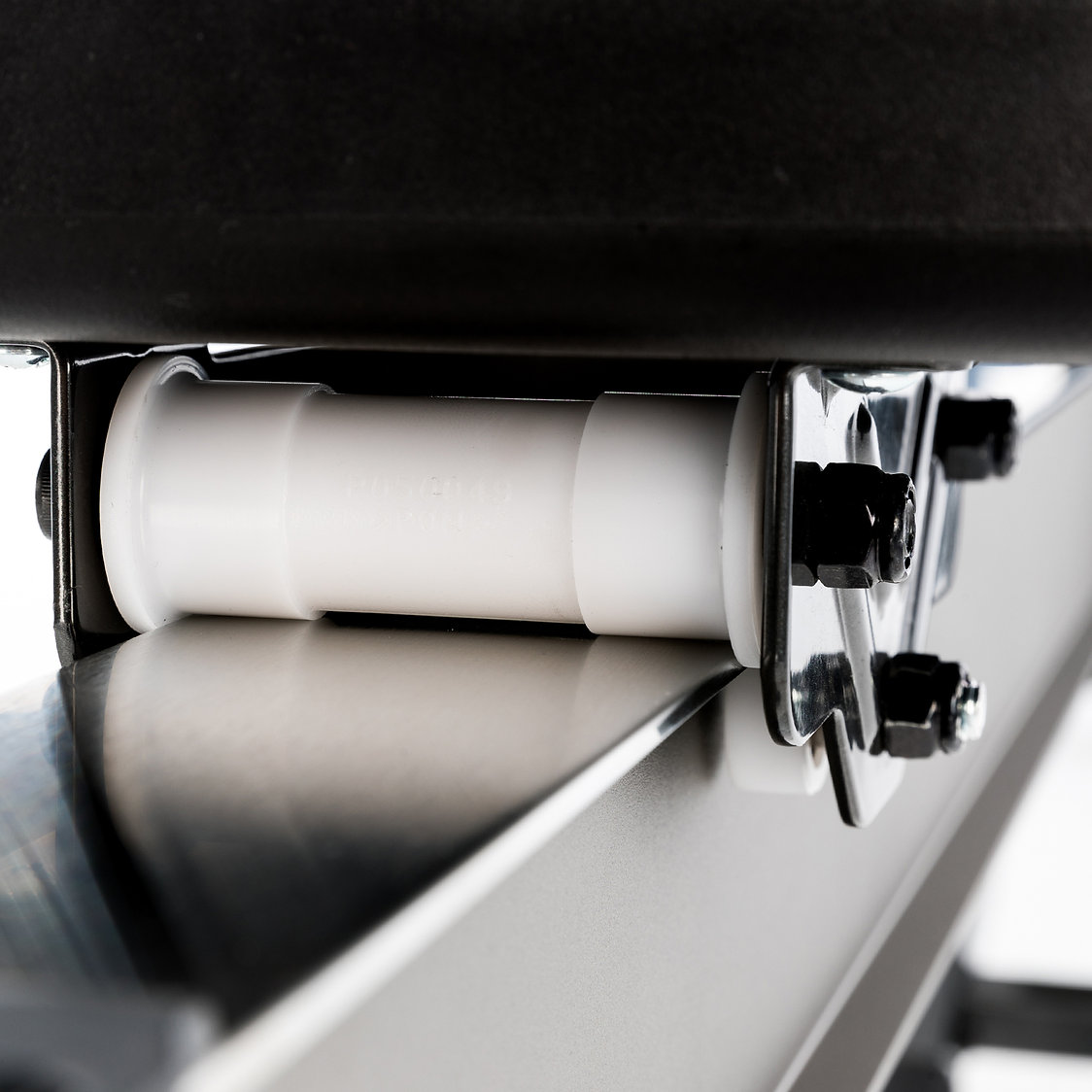 - Міцна сталева рама з алюмінієвою монорейкою виготовлена з високоякісної сталі товщиною 3 мм, покрита високоміцною зносостійкою двошаровою полімерною фарбою. Максимально зручні: висота рами 508 мм та складна конструкція для зберігання;