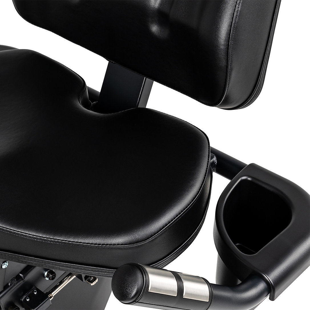 - Анатомічна спинка сидіння. Сидіння має 12 рівнів регулювання відстані до педалей велотренажера;