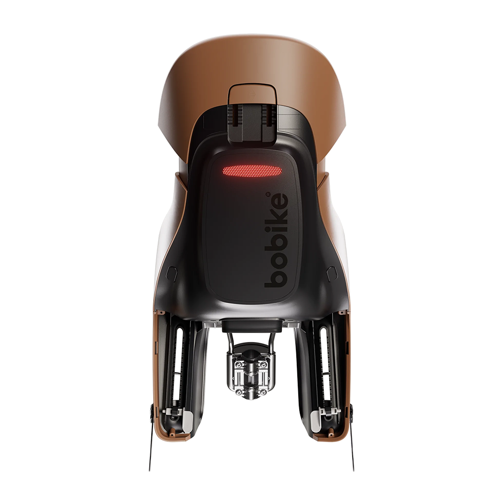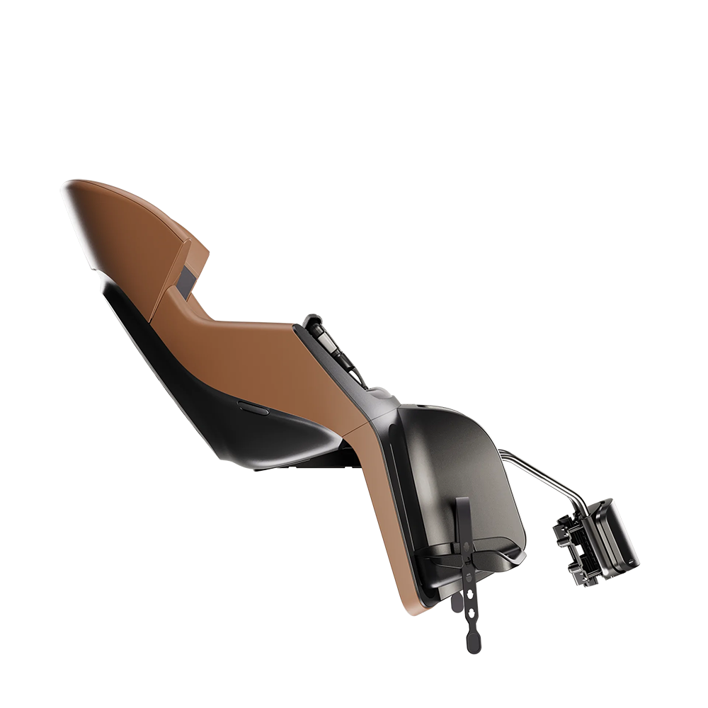 Кріплення на раму. Унікальна система New Mounting для блискавичної установки в одній точці кріплення. Кронштейн безпеки оснащений захисним тримачем із зеленими індикаторами, що загоряються, забезпечуючи візуальний сигнал про правильне встановлення. Система також дозволяє переміщати сидіння вперед і назад у 3 положеннях залежно від розміру дитини та розміру велосипеда. Підходить для круглих та овальних підсідельних труб діаметром від Ø28 до 40 мм. Потрібна труба довжиною 105 мм, спеціально розроблена для розміщення гальмівного троса, що запобігає його защемленню. Придбання другого кронштейна дозволяє легко переносити сидіння з одного велосипеда на інший.