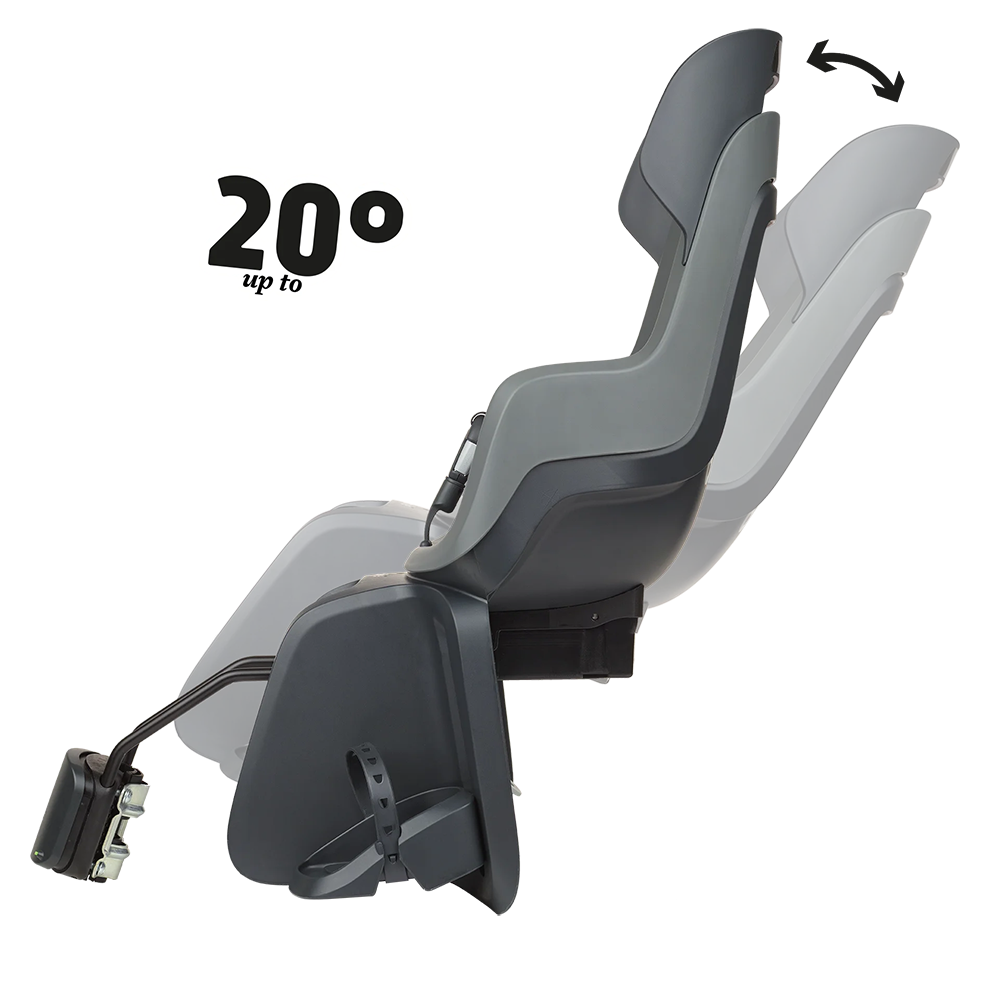 Система регулювання нахилу без інструментів. Нахил спинки може досягати 20º всього за кілька секунд. Просто натисніть кнопку нахилу, не знімаючи дитину. Ідеально підходить для дітей, які засинають під час подорожі велосипедом.