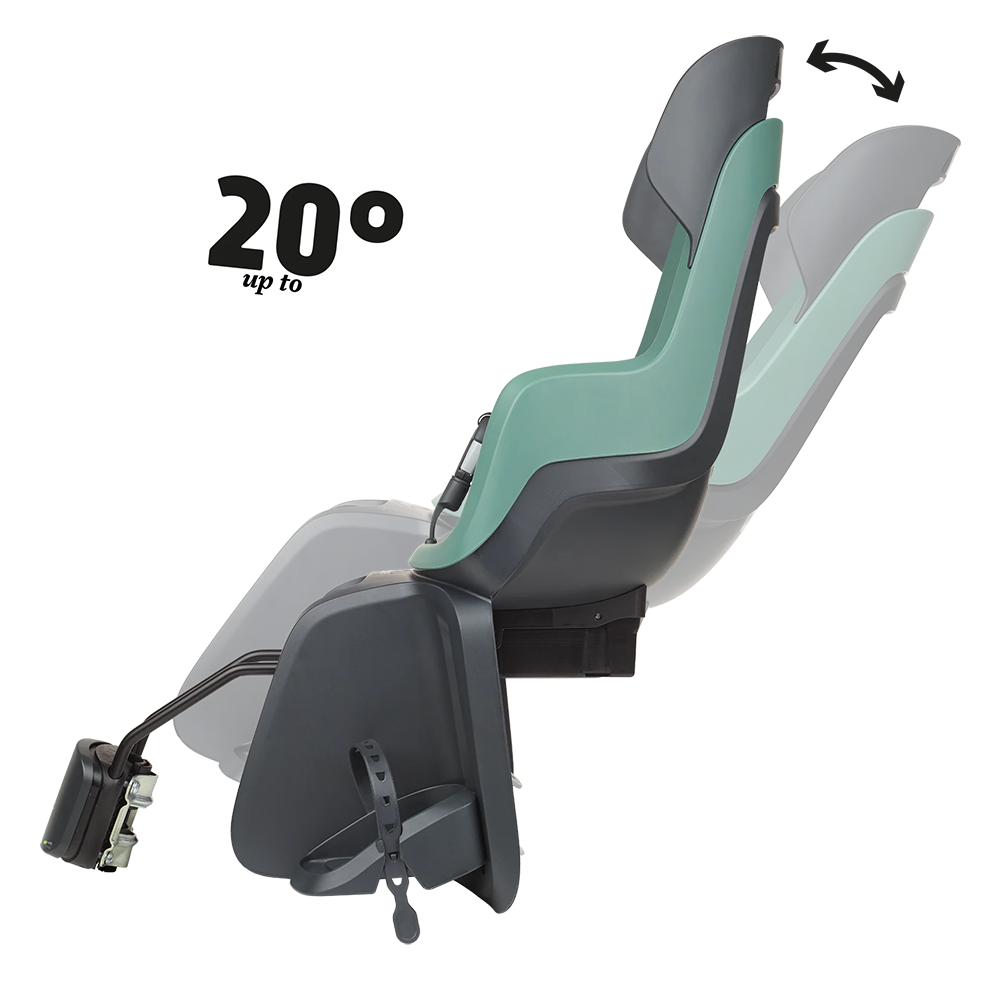 Система регулювання нахилу без інструментів. Нахил спинки може досягати 20º всього за кілька секунд. Просто натисніть кнопку нахилу, не знімаючи дитину. Ідеально підходить для дітей, які засинають під час подорожі велосипедом.