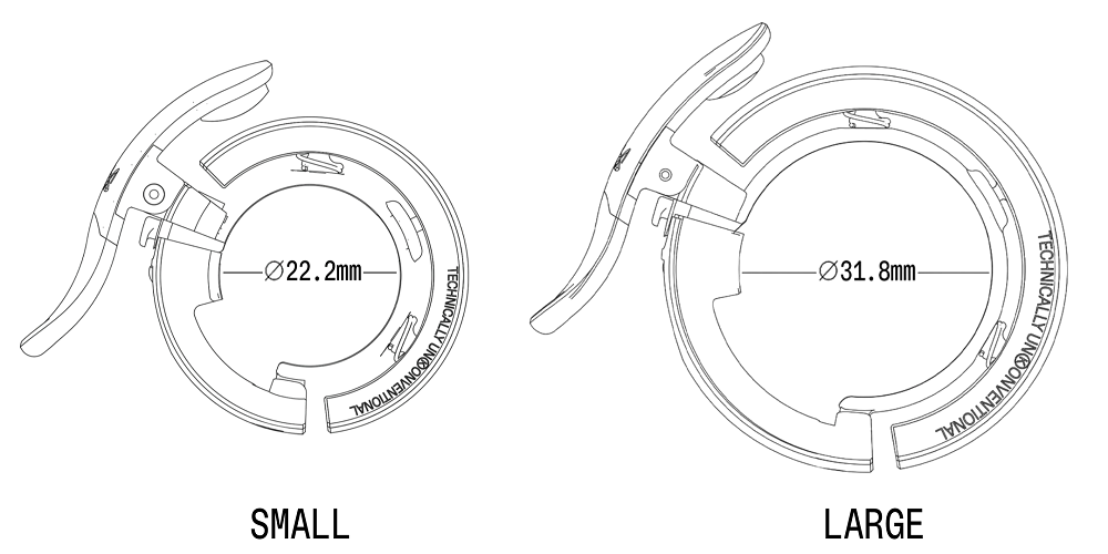 Доступен в двух размерах для обеспечения правильной посадки на руль. Большой размер подходит для рулей диаметром 23,8–31,8 мм, а маленький - для рулей диаметром 22,2 мм.