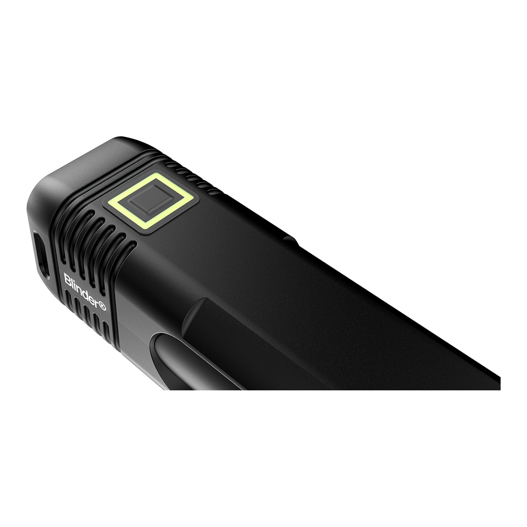 - Надійна та міцна технологія акумулятора Blinder 1000 працює від високоємного літій-іонного акумулятора 21700 3,7 В, використовуючи передові технології елементів живлення, забезпечує виняткове співвідношення потужності та ваги, а також більш тривалий час роботи, ніж у більшості ліхтарів.