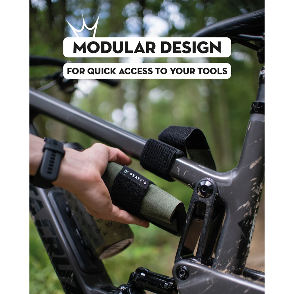Органайзер-обгортка для інструментів Holdfast від Peaty розроблена спільно зі спортсменами чемпіонату світу, щоб стати ідеальним рішенням для зберігання речей з миттєвим доступом, що дозволяє носити все необхідне на велосипеді без необхідності носити з собою рюкзак. Немає зісковзування та деренчання. Розроблена система забезпечує кріплення ременя за допомогою міцного гумового матеріалу, щільно утримує інструменти на рамі та не зміщується ні на дюйм.