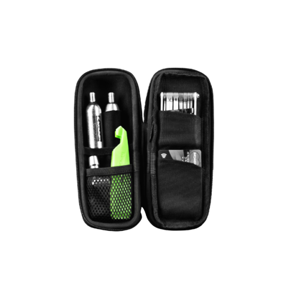 підсідельна сумка Birzman Feexcase-це невелика конструкція, яка підійде для того, щоб взяти з собою кілька інструментів, питну воду, смартфон або ключі. Кріплення на липучці забезпечує швидкість зняття і фіксації, а відділення на блискавці дозволить вам покласти пляшку або термос. Всередині також передбачена сітчаста перегородка для інструментів, запчастин або кредитних карт. Всі предмети міцно утримуються всередині, знижуючи рівень шуму під час руху.