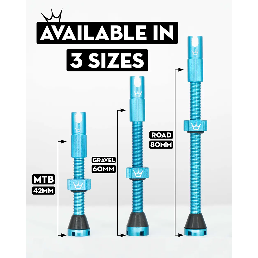 Безкамерні моделі Chris King Vannes Peaty виготовлені з легкого анодованого алюмінію, доступні довжиною 42 мм, 60 мм та 80 мм і підходять для більшості безкамерних дисків, включаючи карбонові, ендуро та DH. Велика м'яка гумова основа легко забезпечує ущільнення герметичного отворів ніпеля діаметром до 8 мм. Вбудовані знімники сердечника ніпеля дозволяють легко зняти ніпель і заповнити його герметиком, коли ви перебуваєте в дорозі.