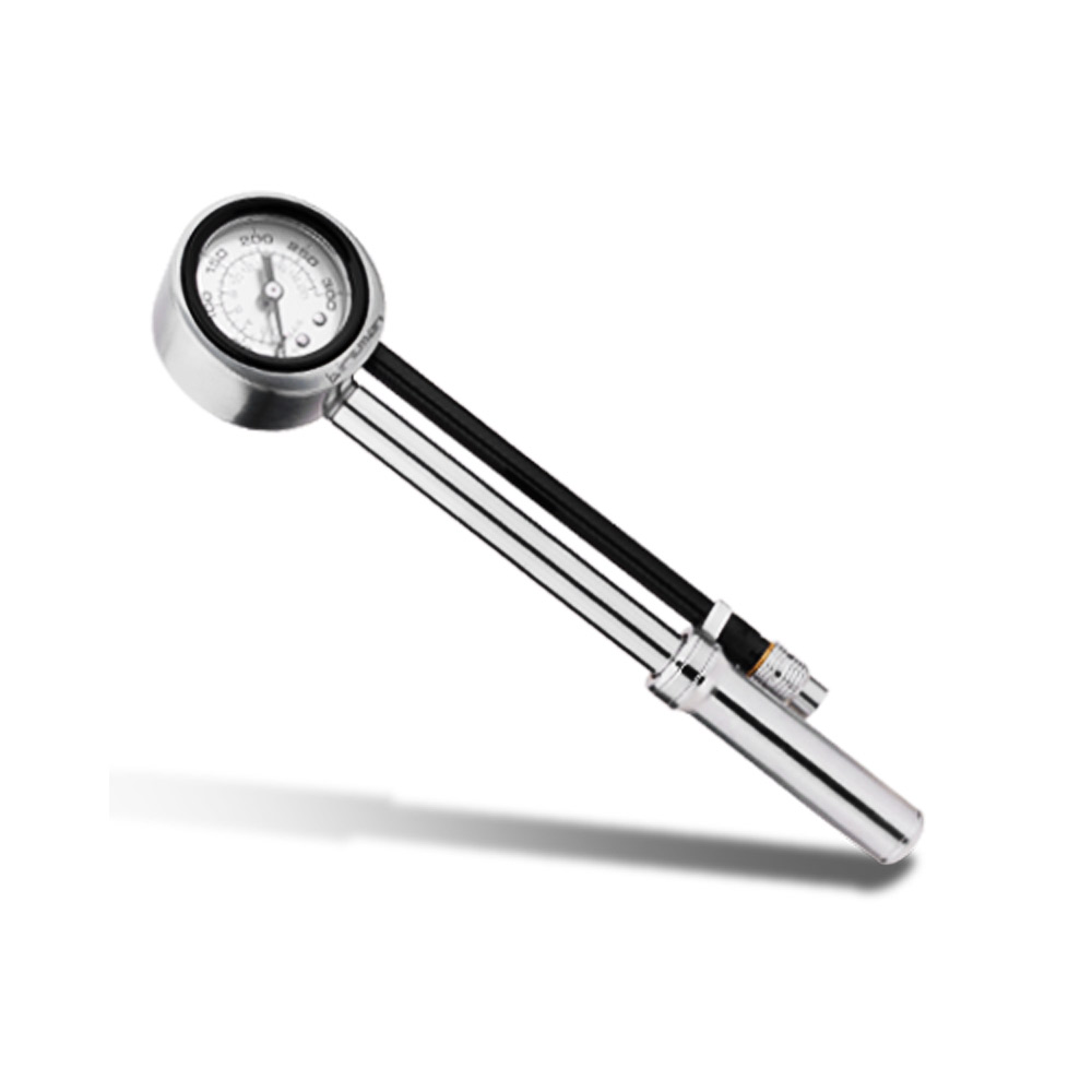 Насос оснащений зручним і високим штуцером, який накручується на клапан вилки, а також ергономічною ручкою з упором – все це дозволяє створити правильні настройки тиску повітря, а також підлаштувати підвіску в умовах, мінливих протягом дня температур або в залежності від складності траси. Крім того, ззаду на манометрі є кнопка скидання повітря.
