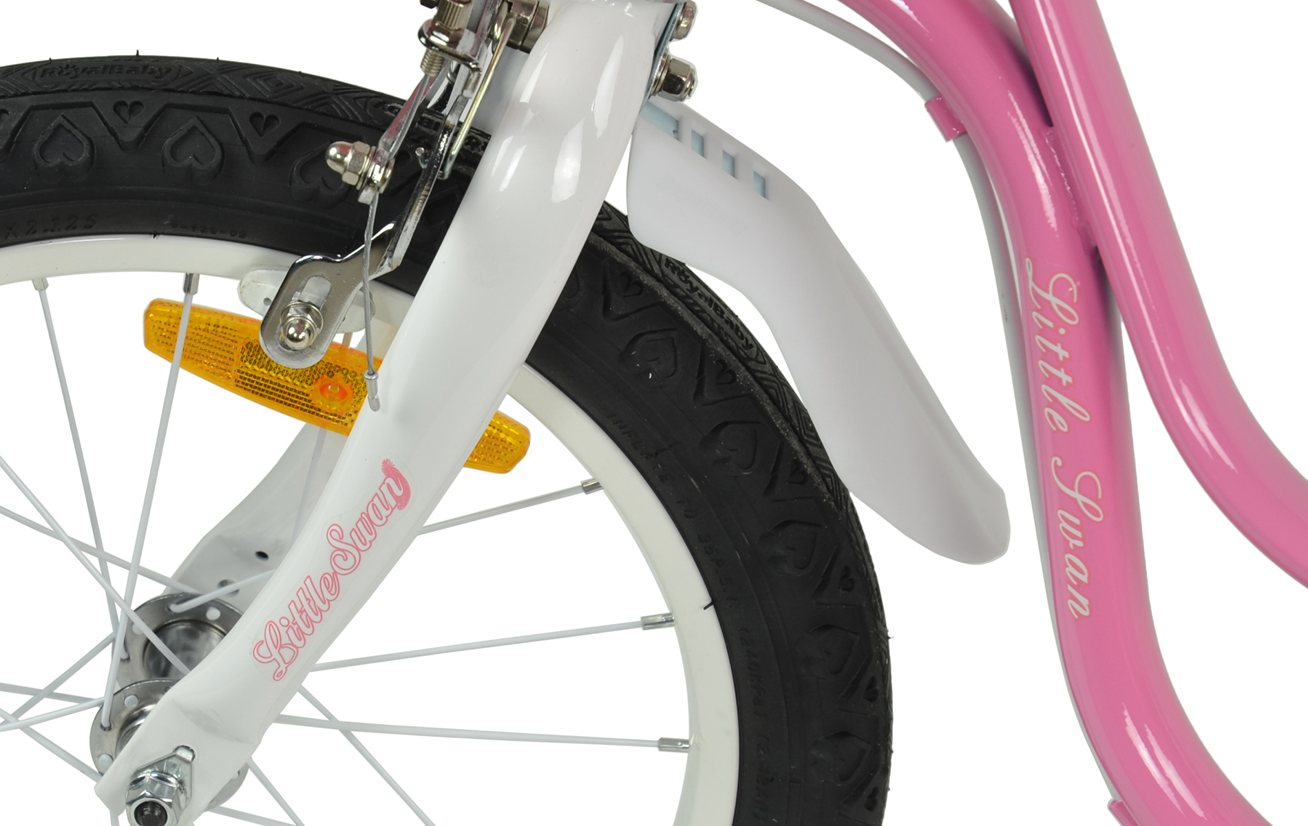 Граціозні вигини і м'які лінії велосипеда асоціюються з образом прекрасного лебедя. Ця модель покликана підкреслити витонченість і жіночність молодих красунь, які будуть спритно керувати велотранспортом і ловити захоплені погляди перехожих. Велосипед виконаний в біло-рожевих тонах, корпус захисту ланцюга прикрашений принтом із зображенням крил.