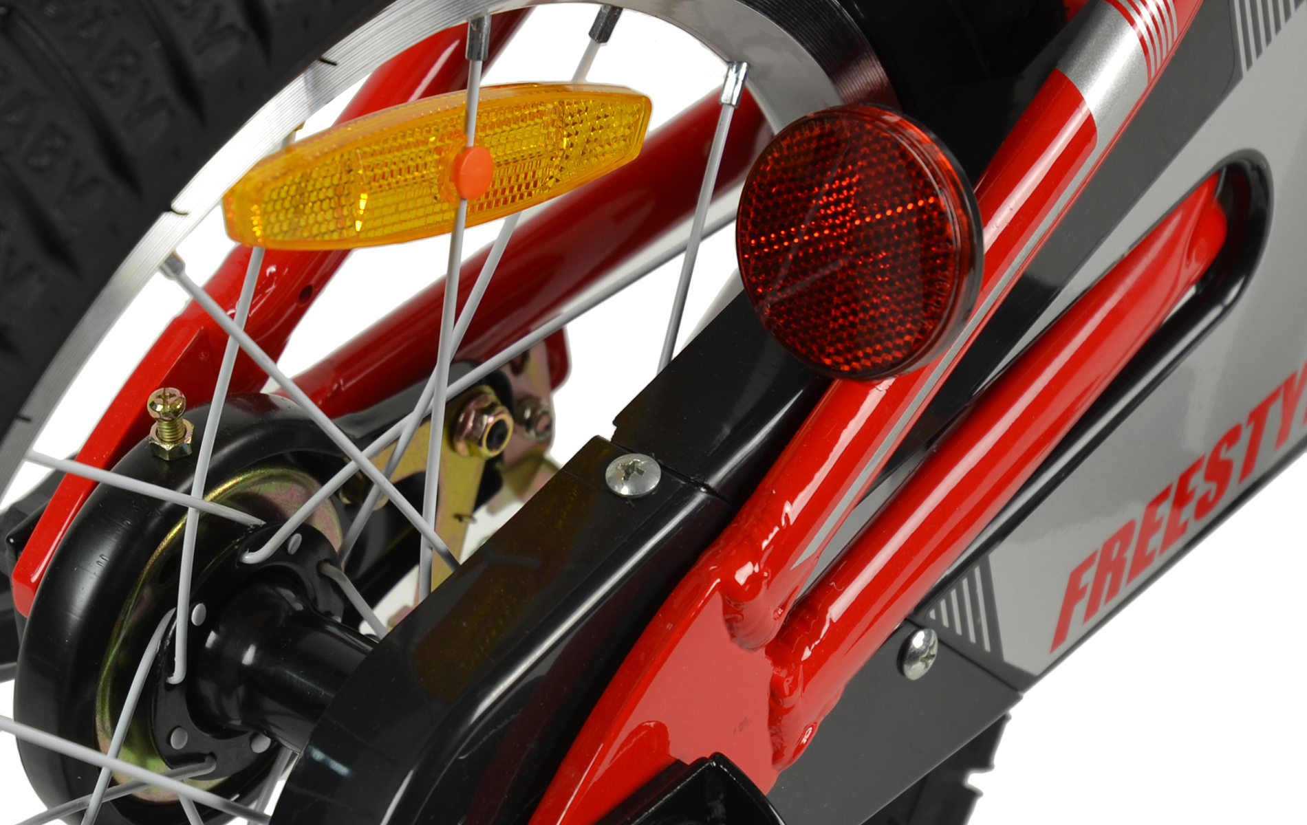 Стильний дитячий велосипед з полегшеною рамою сподобається любителям спортивного дизайну. Універсальне оформлення припаде до смаку і хлопчикам, і дівчатам: на вибір надається 5 варіантів забарвлення (червоний, жовтий, помаранчевий, сріблястий, чорний), і кожен зможе вибрати колірну гамму на свій розсуд!