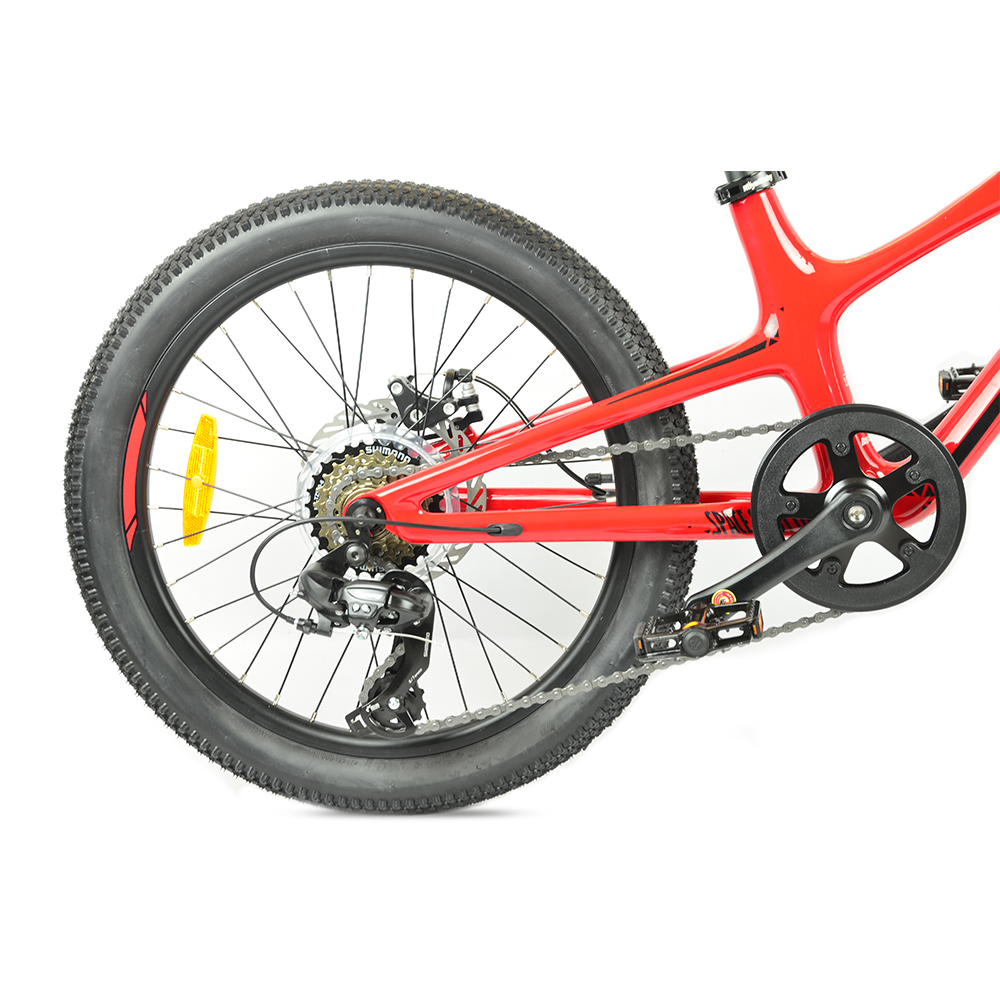 Креативна будова рами-це цікава фішка моделі. Вона виконана з карбону, що по праву нарікає байк одним з легких на ринку в своєму сегменті. Крім того, даний матеріал стійкий до корозії і не боїться механічних пошкоджень, які є частою проблемою при використанні велосипеда дітьми. Стійкість до високих навантажень, вібраційна міцність. У карбону багато переваг, яким можна приділити окремий час, але загальна її характеристика ясно дає зрозуміти, що велосипед на такій рамі підійде активним дітям, які постійно пробують щось нове.