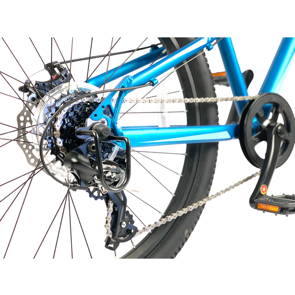 Підлітковий 24-дюймовий велосипед для катання по місту та дрібному бездоріжжю, поїздок до школи та велопрогулянок у вихідні дні. має легку алюмінієву раму із низькою геометрією, яка забезпечує комфортну посадку для підлітка. Амортизаційна вилка зробить їзду м'якшою, надійні дискові гальма допоможуть швидко зупинити велосипед на будь-якій місцевості. 8-швидкісна трансмісія дозволить вибрати необхідну швидкість і легко підніматися в гірку.