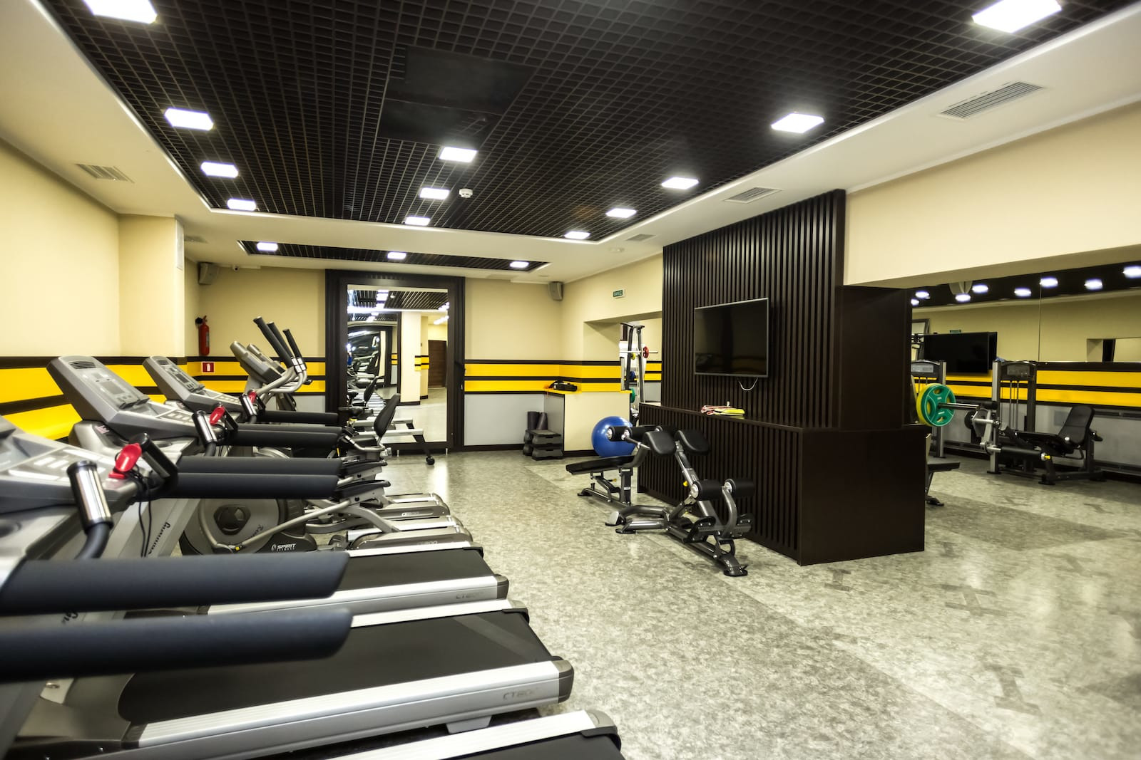 - тренажерний зал, оснащений професійними тренажерами Impulse, грузоблочної серії Max і вільними вагами Sterling, біговими доріжками, орбітреками, велотренажерами Spirit, гребним тренажером Sportop R700+